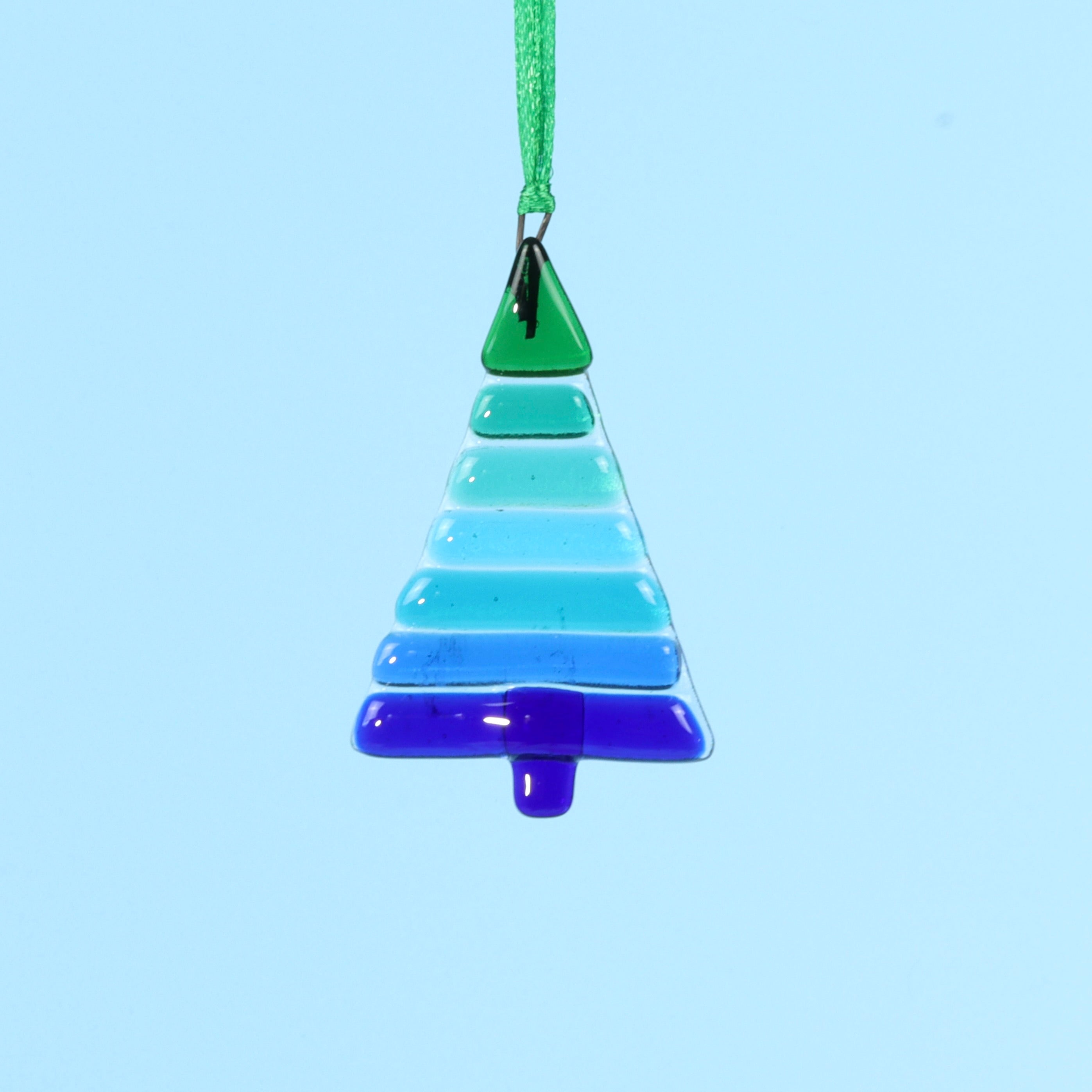 Fabulous Stripy Fused Glass Blue Christmas Tree... the perfect Christmas Decoration!