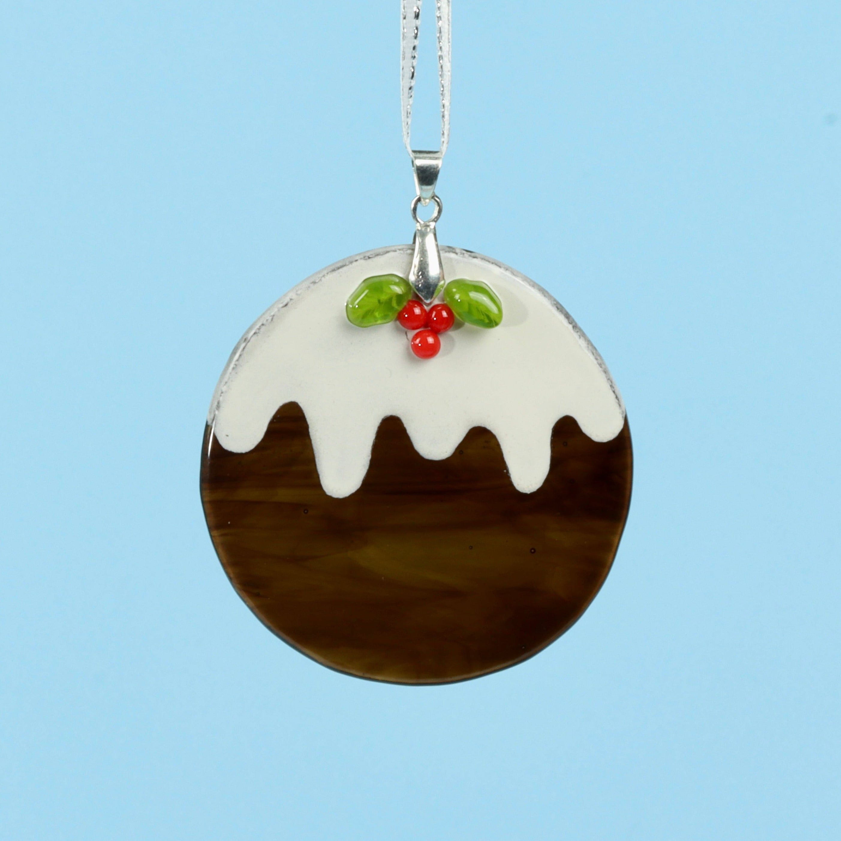 Pick up a Cute Christmas Pudding Fused Glass Decoration.