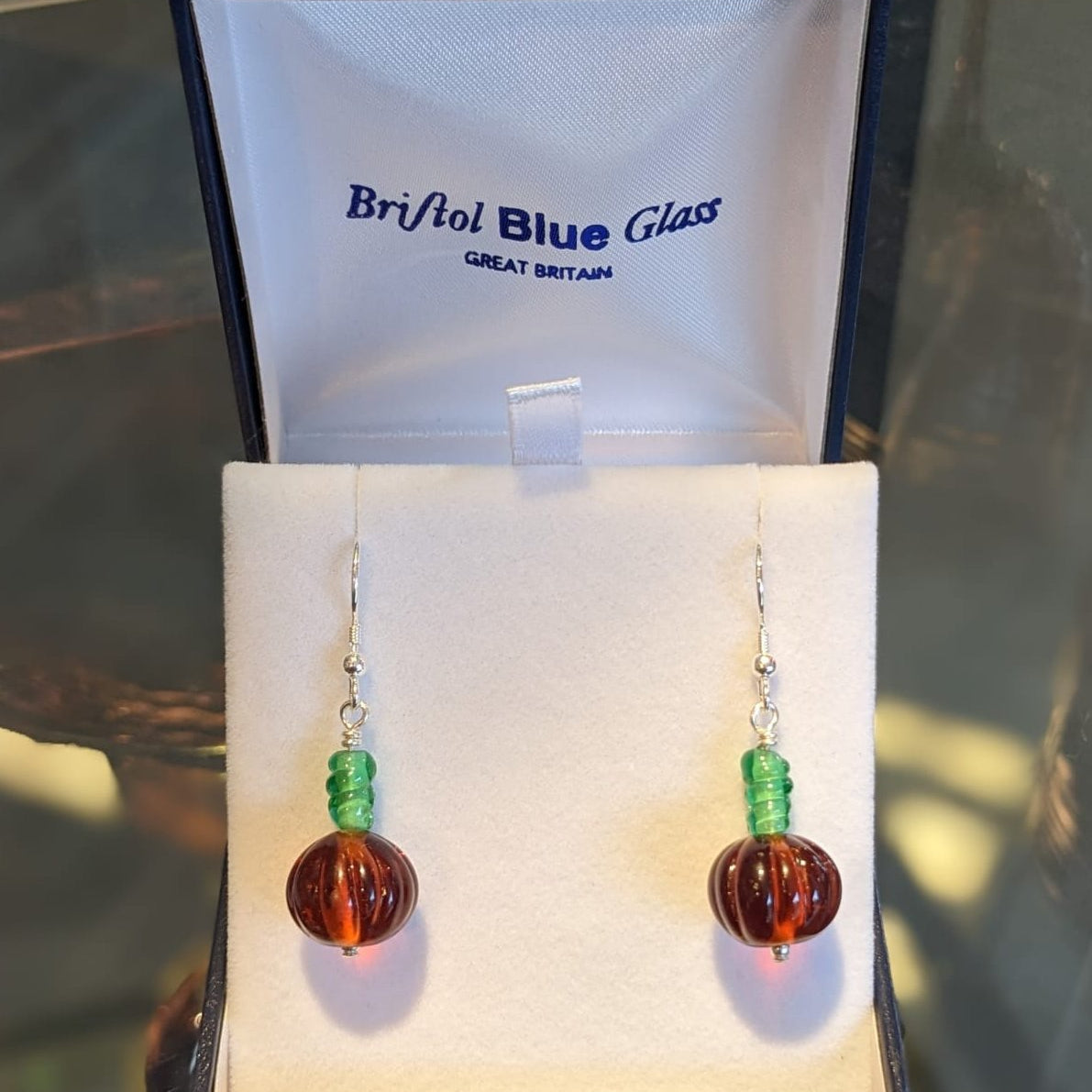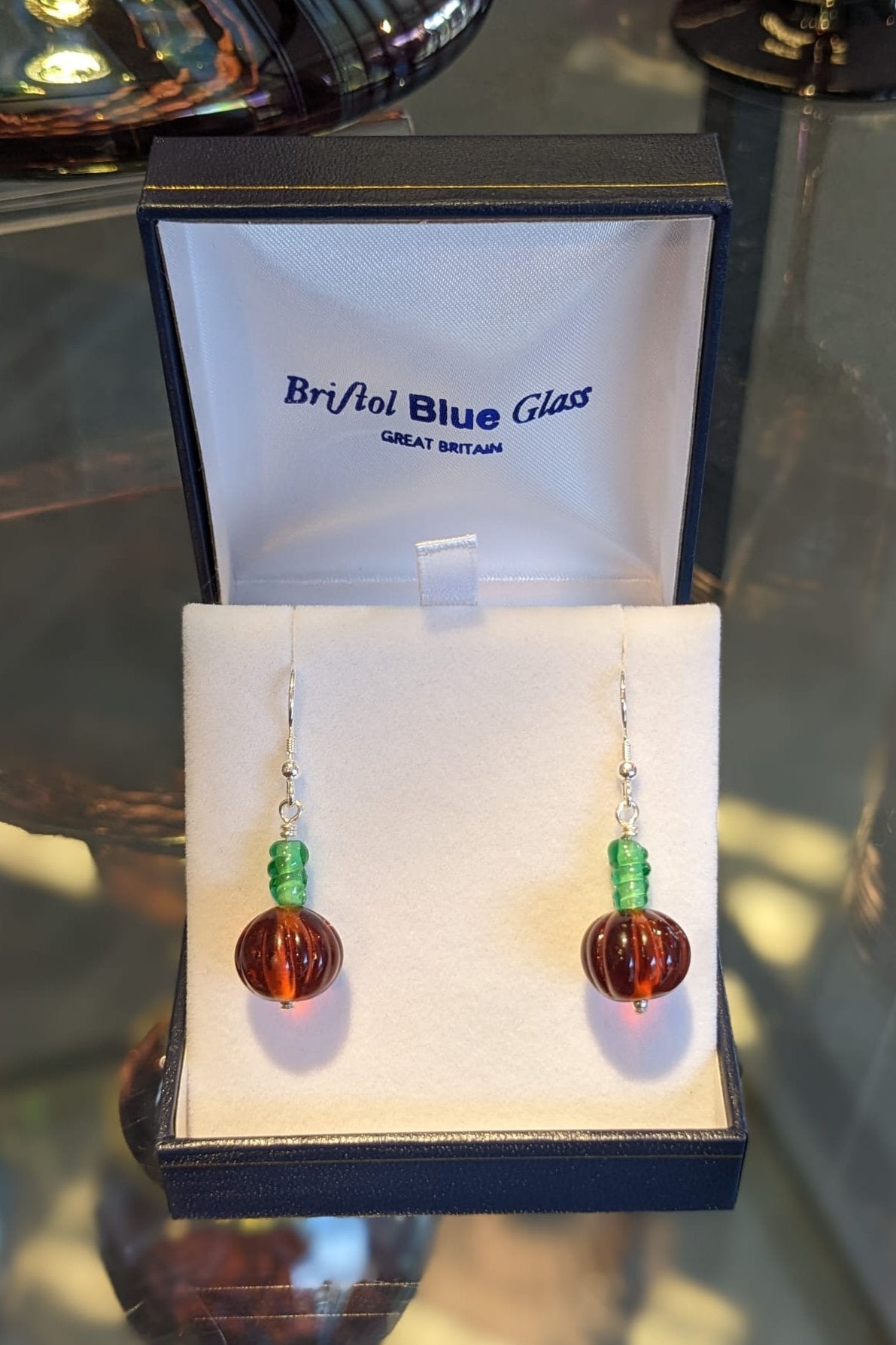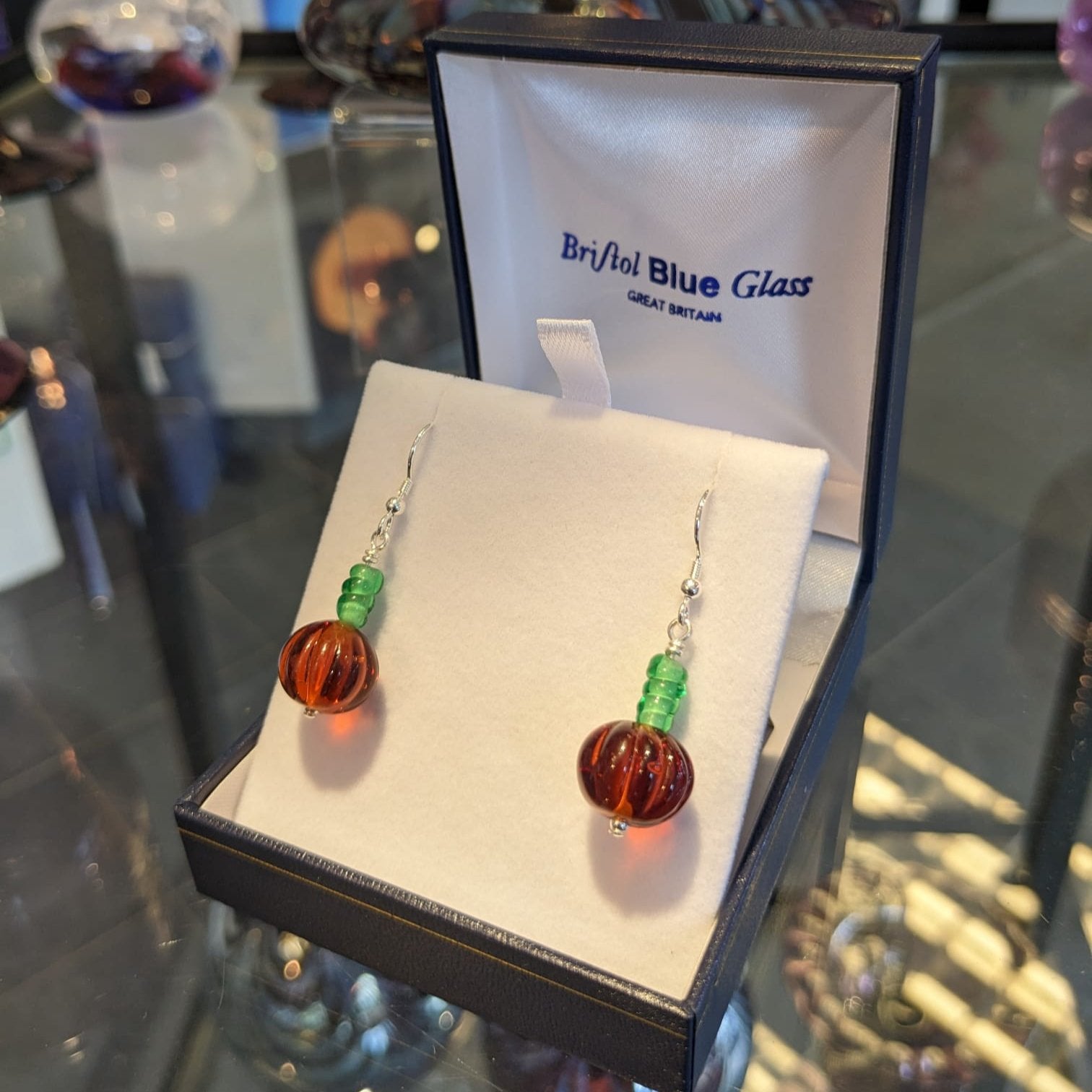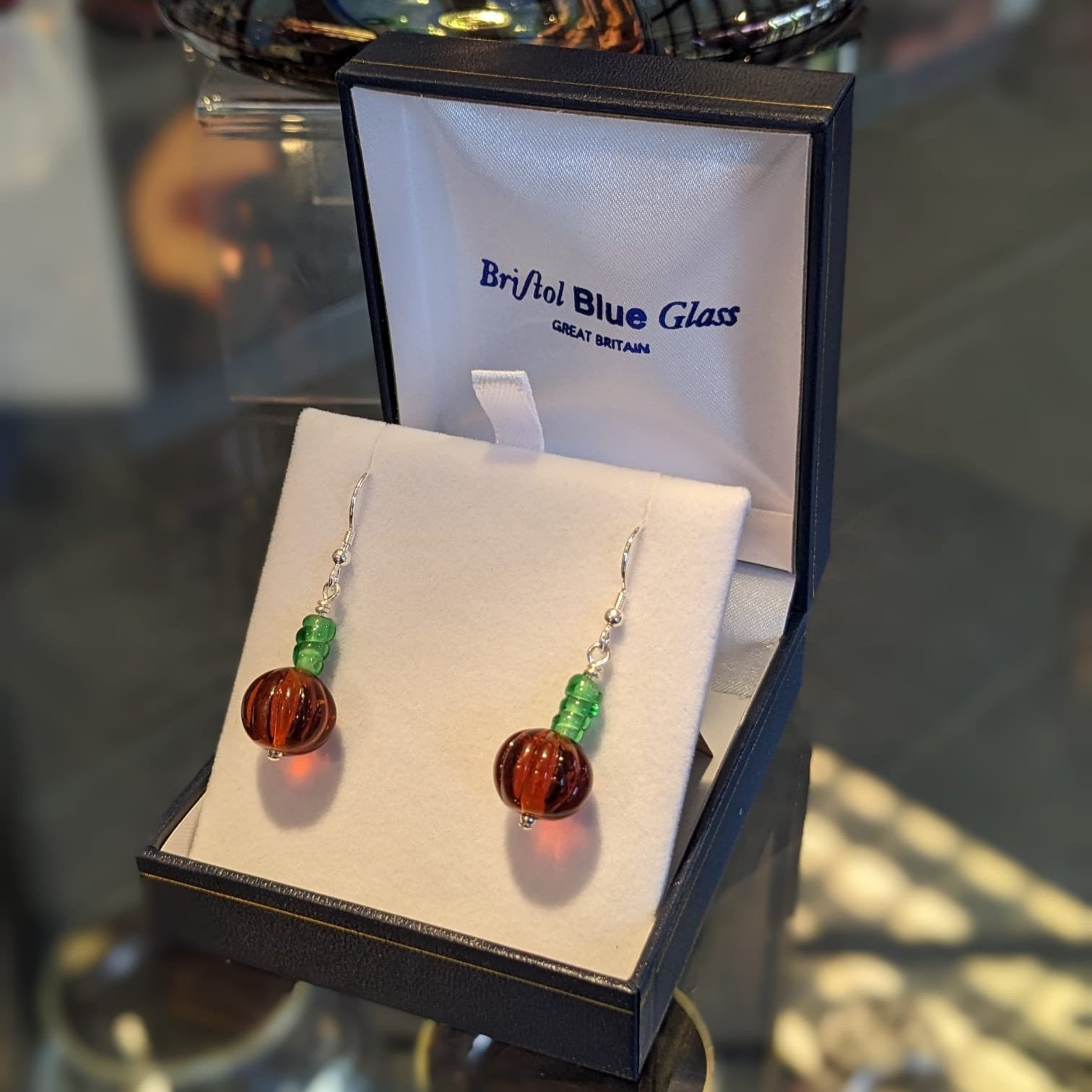 Tiny glass pumpkin earrings, handmade using traditional lampworking techniques. Each set is unique and perfect for Autumn and Halloween! Glass size approx 1.5 cm wrapped with sterling silver.