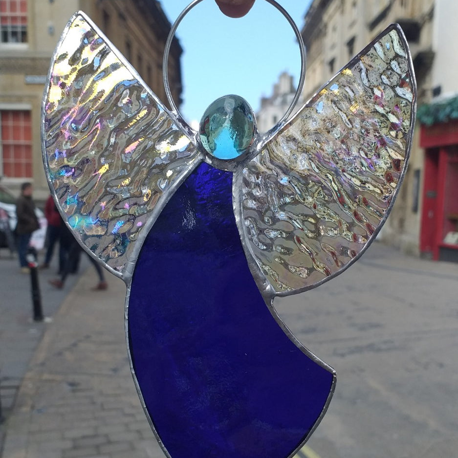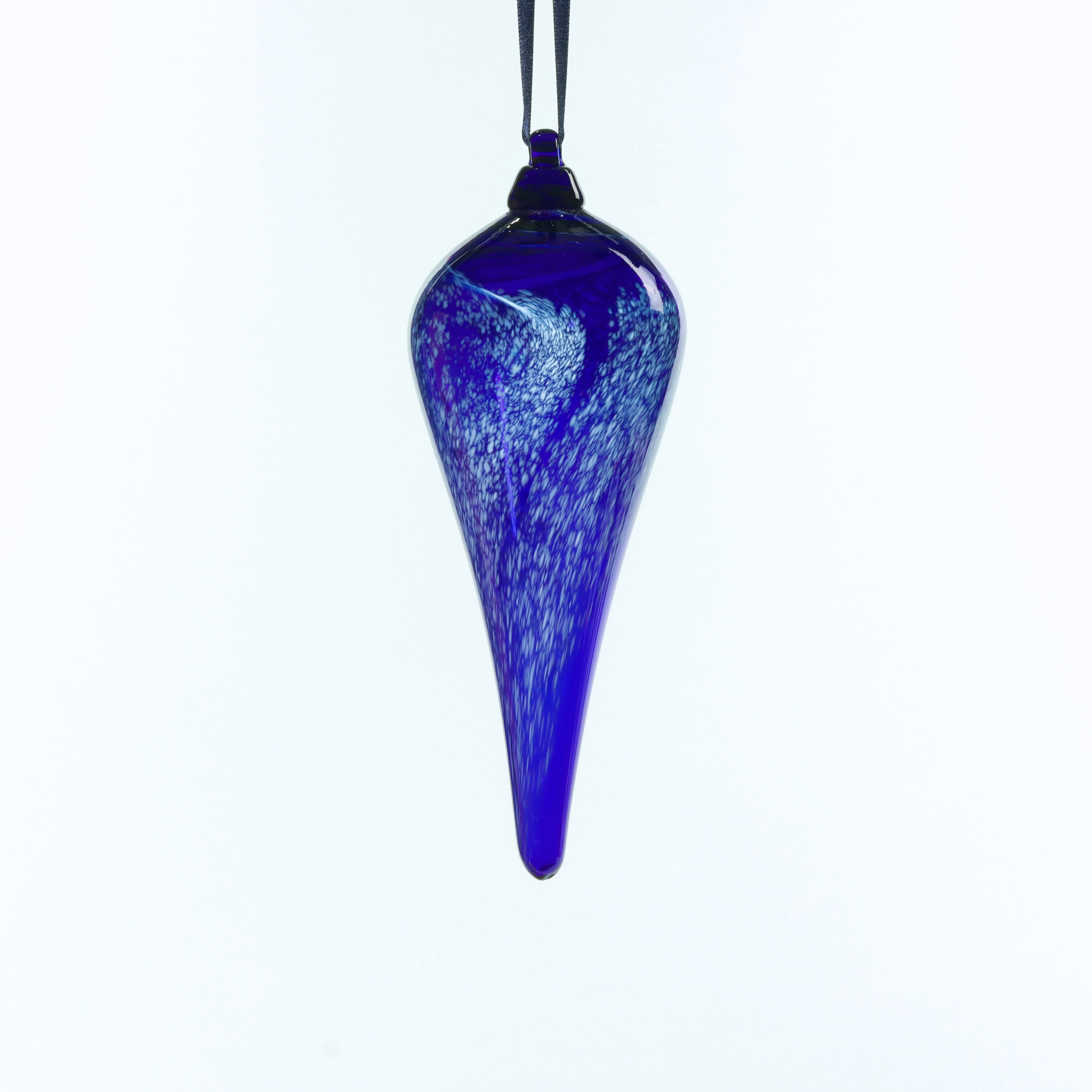 Made from Bristol blue glass with the silver swirl 'Aurora' pattern, it will catch the lights and sparkle like no other bauble!