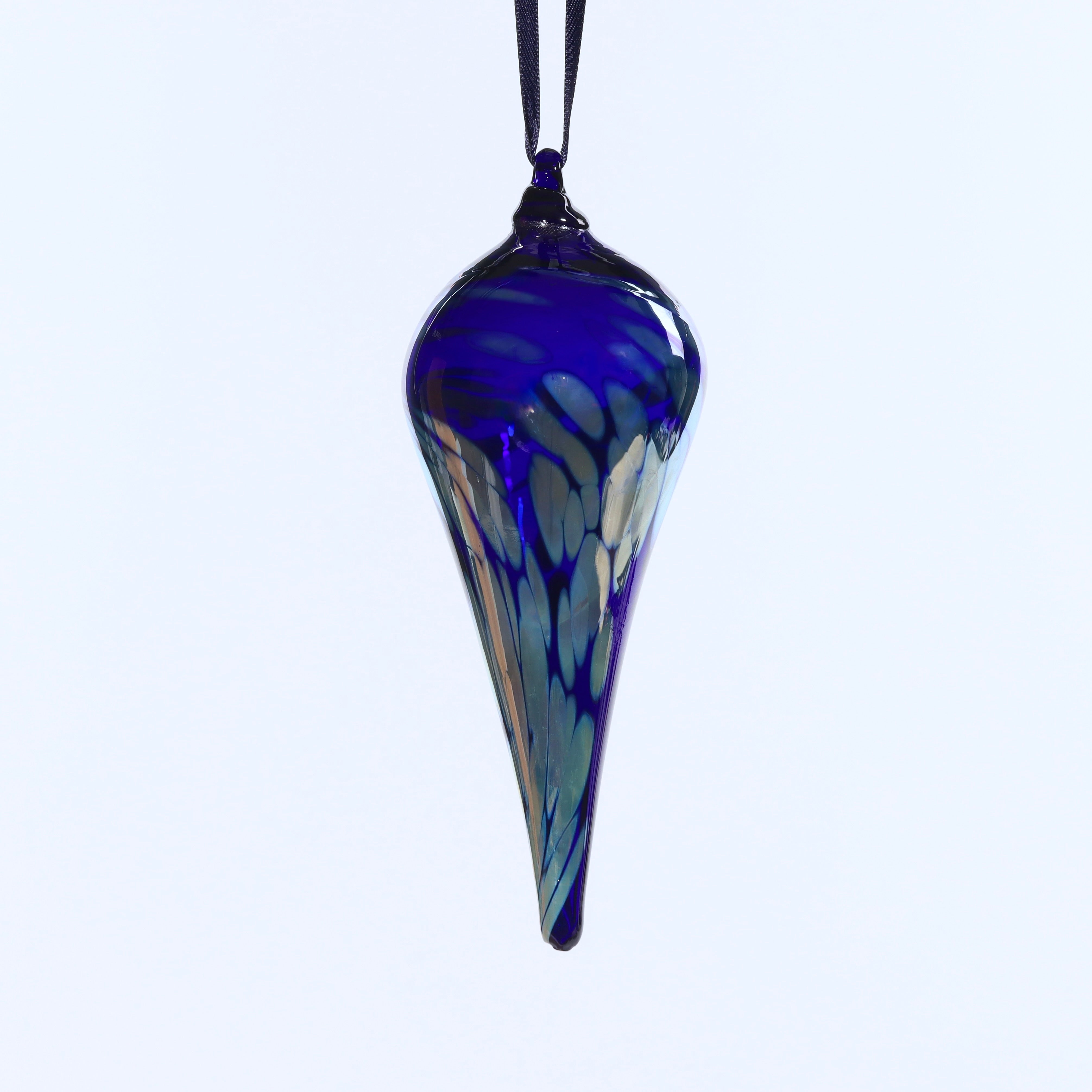 A very distinctive and very striking blue glass 'Aurora' festive bauble.