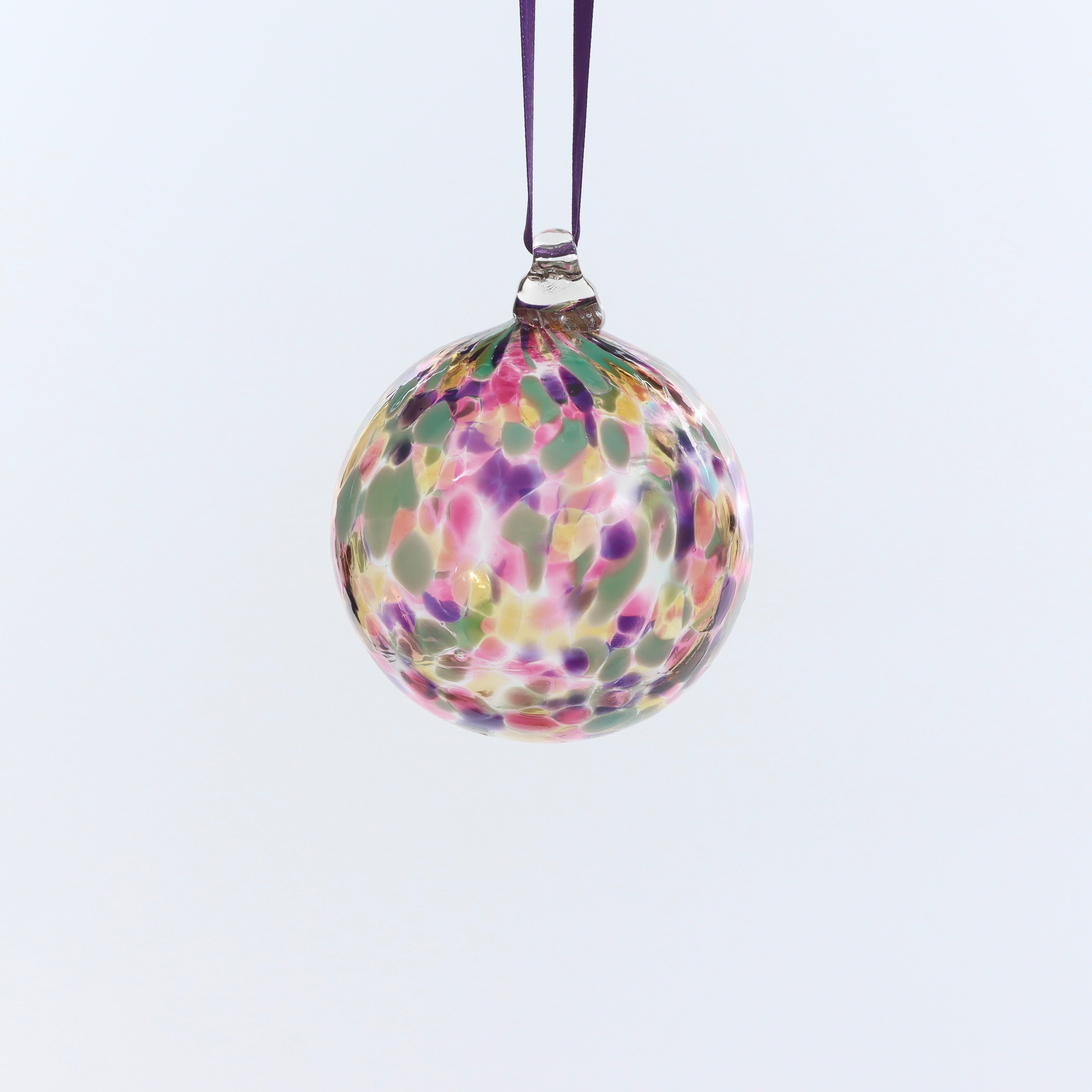 Say it with a bauble! A bright mixture of transparent and opaque multi colours in this lovely bauble, that is perfect for any decorative setting.
