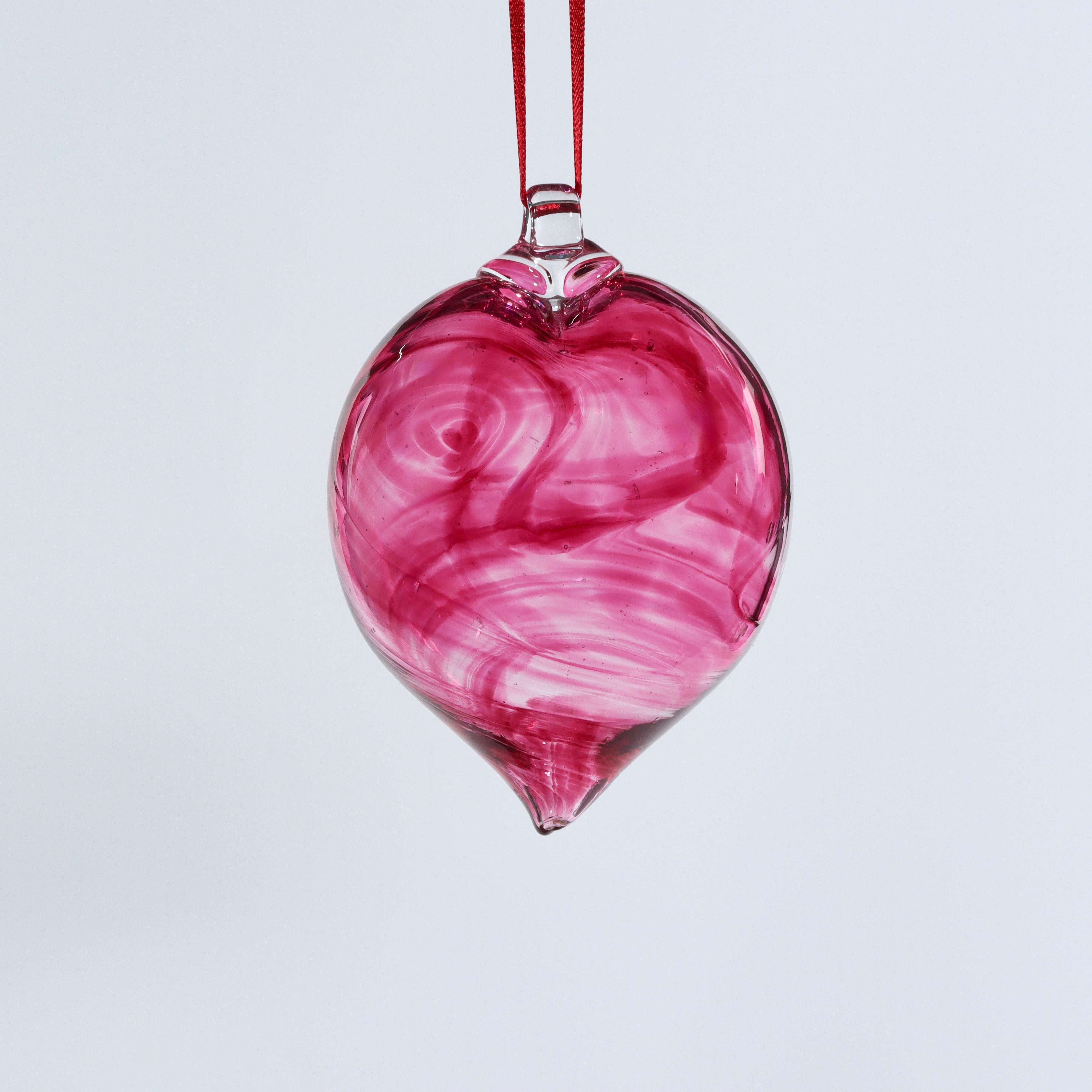 The perfect gift for your sweetheart - beautiful, unique, ruby red swirl hanging heart bauble. No two alike, just like love itself! All baubles are handmade and individual. Patterns and colour shades will vary slightly from piece to piece, making each one totally unique.