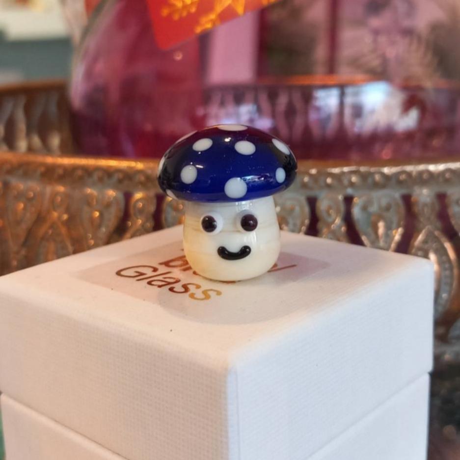 This dinky handmade mushroom is such a FunGUY with his Ooglie eyes! A lucky little mushroom, in colours of Bristol blue.