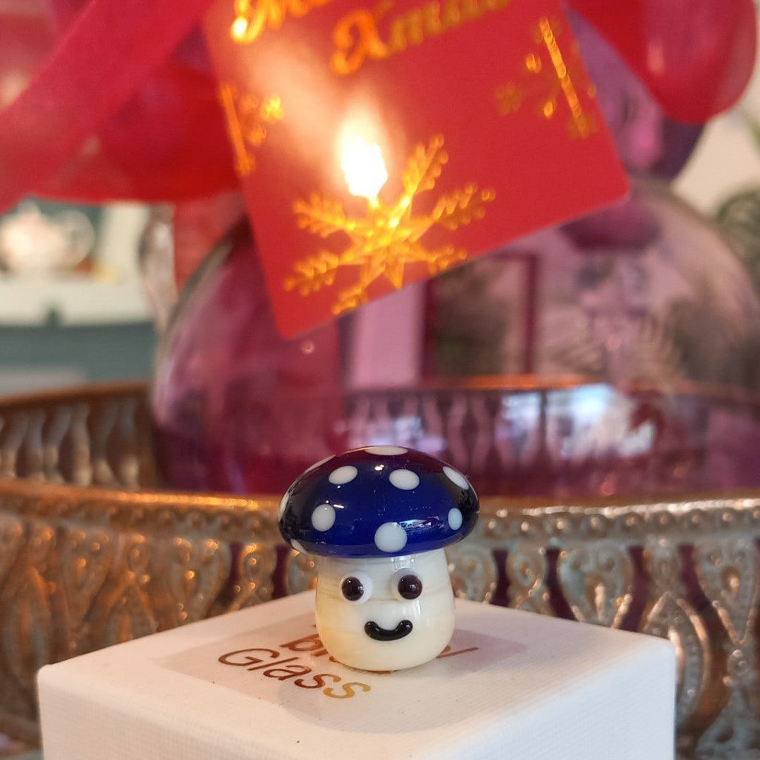 Dinky Blue Mushroom Glass Sculpture