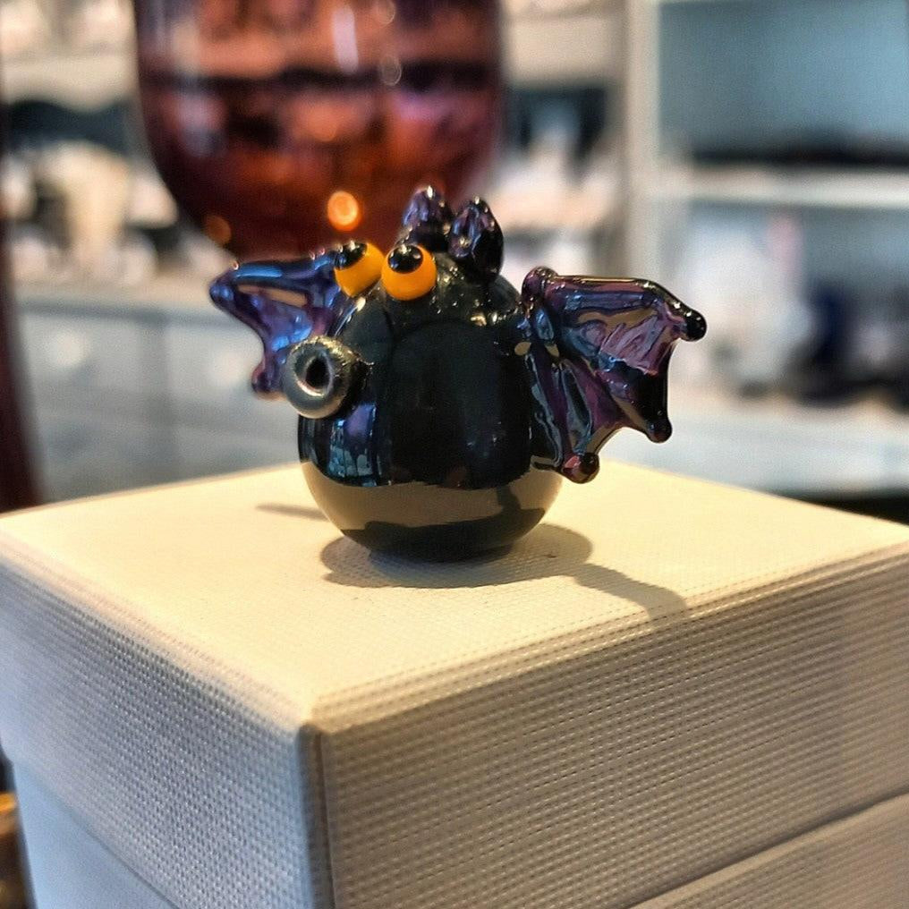 This dinky handmade bat gives joy to all, with its ooglie eyes!