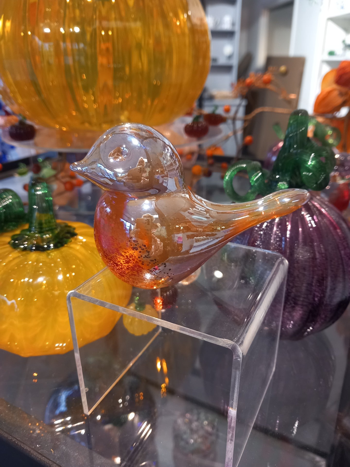 Iridescent Robin glass sculpture is made by hand, and is approximately 10cm long and 7cm tall.