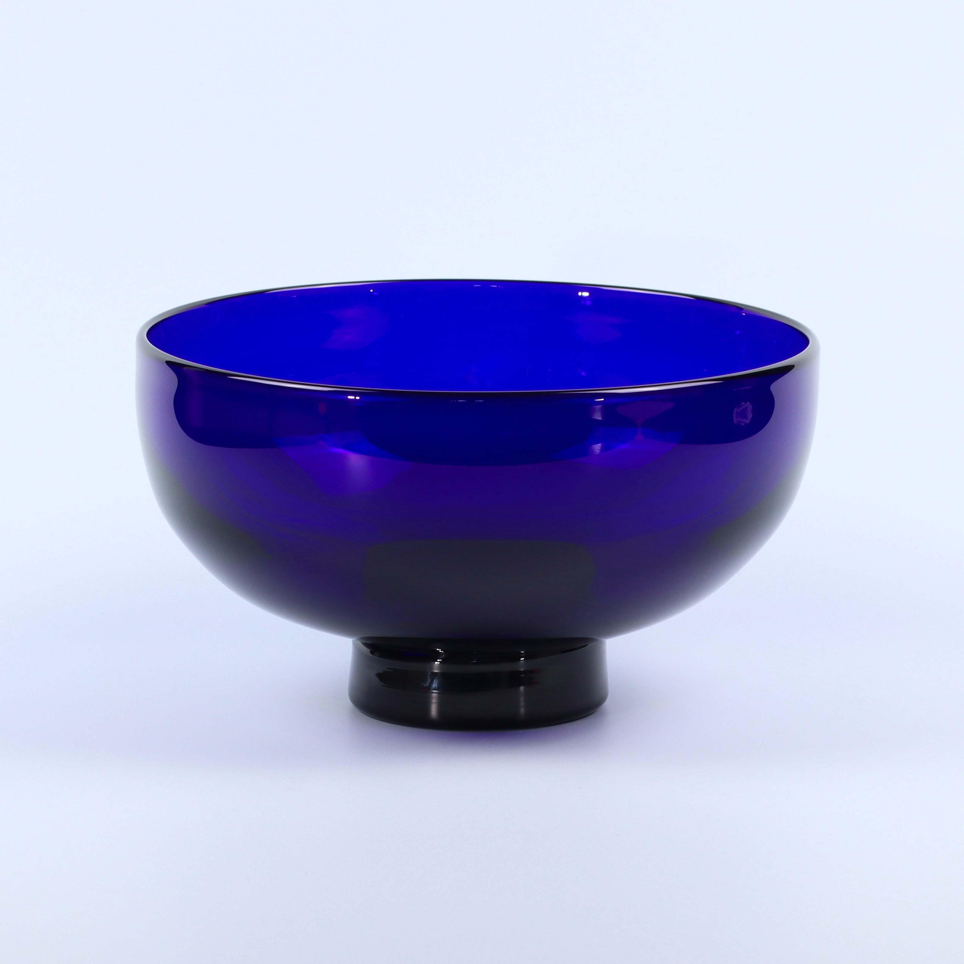 A delightful large Bristol blue glass bowl set on a small integral base. This would make the perfect table centrepiece with some pot pourri, or how about as a fruit bowl? Whatever you decide to do with it you can be sure it will take a very attractive centre stage. Also available in Small and Medium sizes. Made to order in Bristol and shipped worldwide. 10" wide.