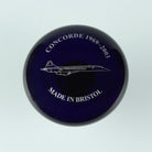 A tribute to the unforgetable Concorde, built in Bristol and the most beautiful aeroplane ever to grace the skies. This is a wonderful Bristol blue glass souvenir of the plane that retired from service in 2003. The paperweight measures approximately 9cm in diameter.