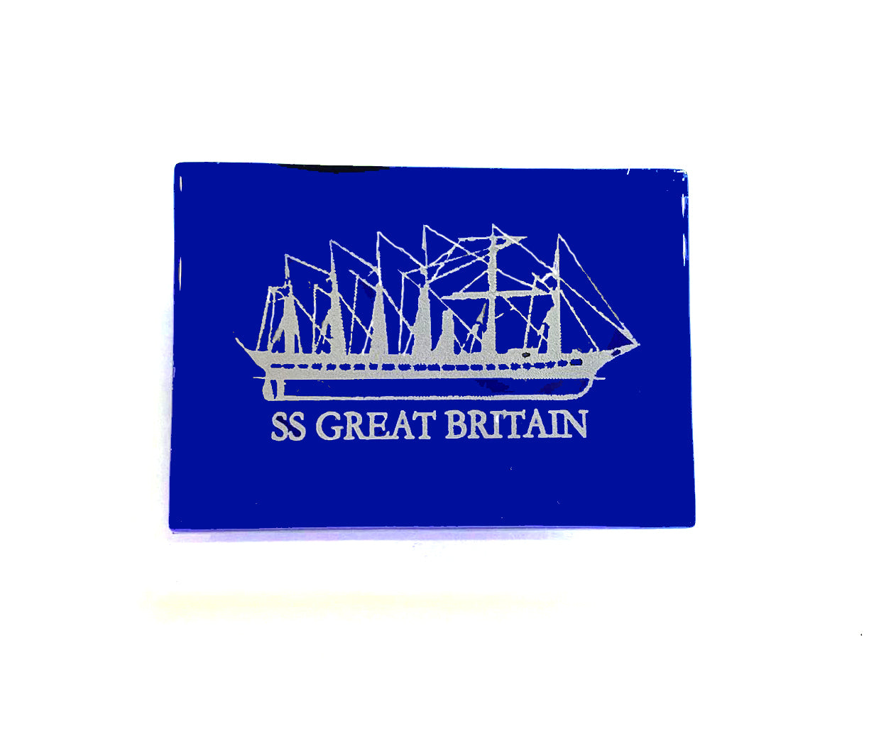 Another souvenir blue glass magnet, this time embodying the iconic "SS Great Britain" ship, built by Isambard Kingdom Brunel. Made to order and made for you by our in-house glassmakers. It wouldn't be right if this wasn't made in Bristol!