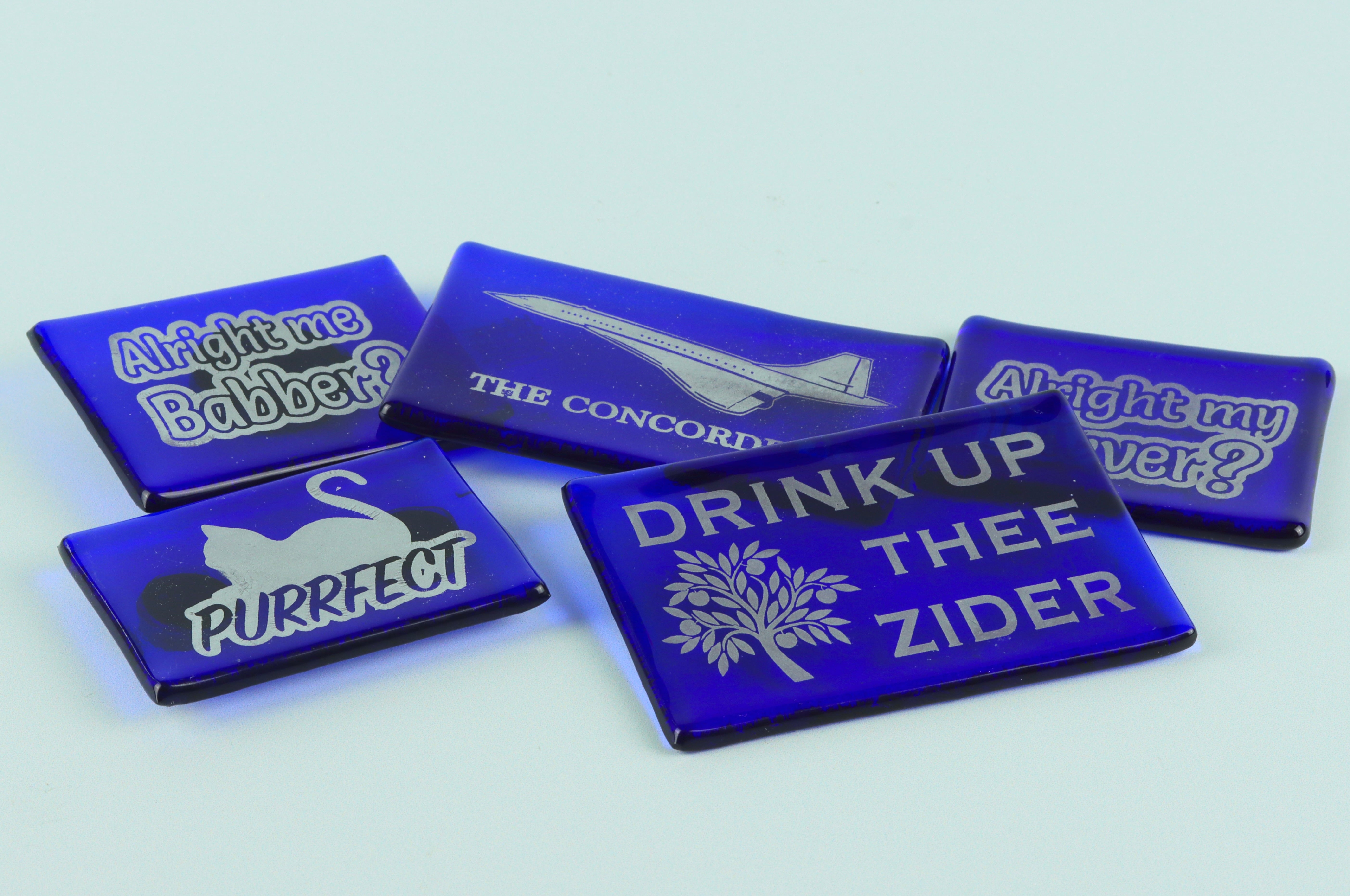 Bristol blue glass magnets for any occasion and all capturing the essence and spirit of the city of Bristol and Bristolian folk. You won't find these anywhere else but if by any chance you do you can be sure they will be inferior quality. There is only one type of Bristol blue glass and there is only one manufacturer that has been producing exceptional glassware products like these for over 30 years. That's us, Original Bristol Blue Glass.