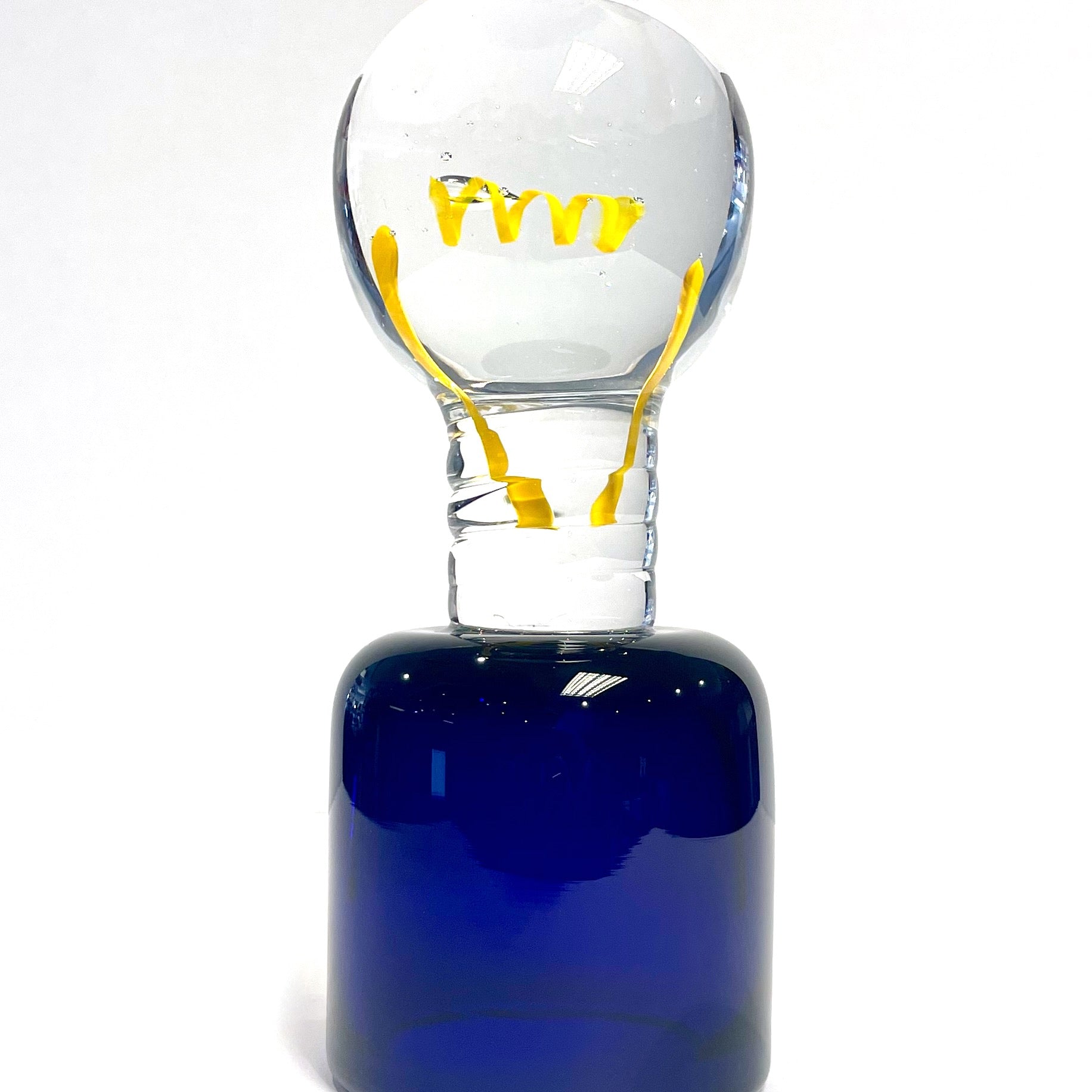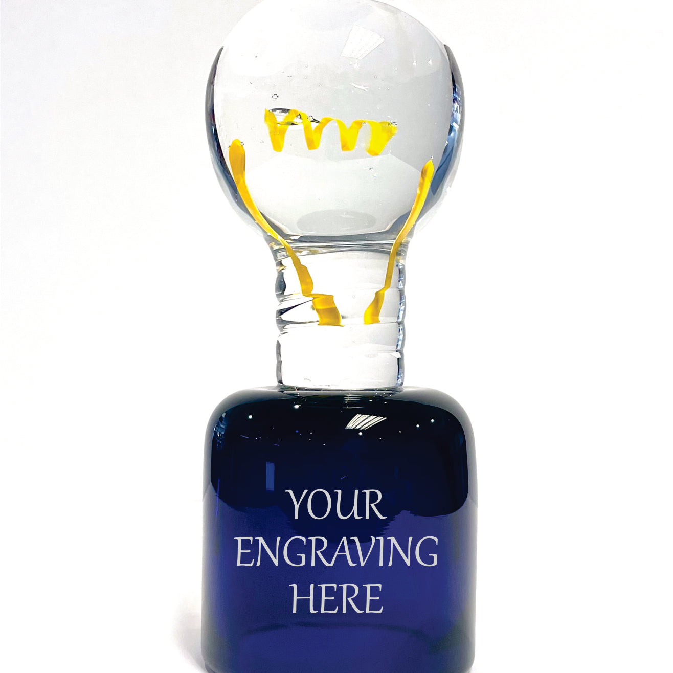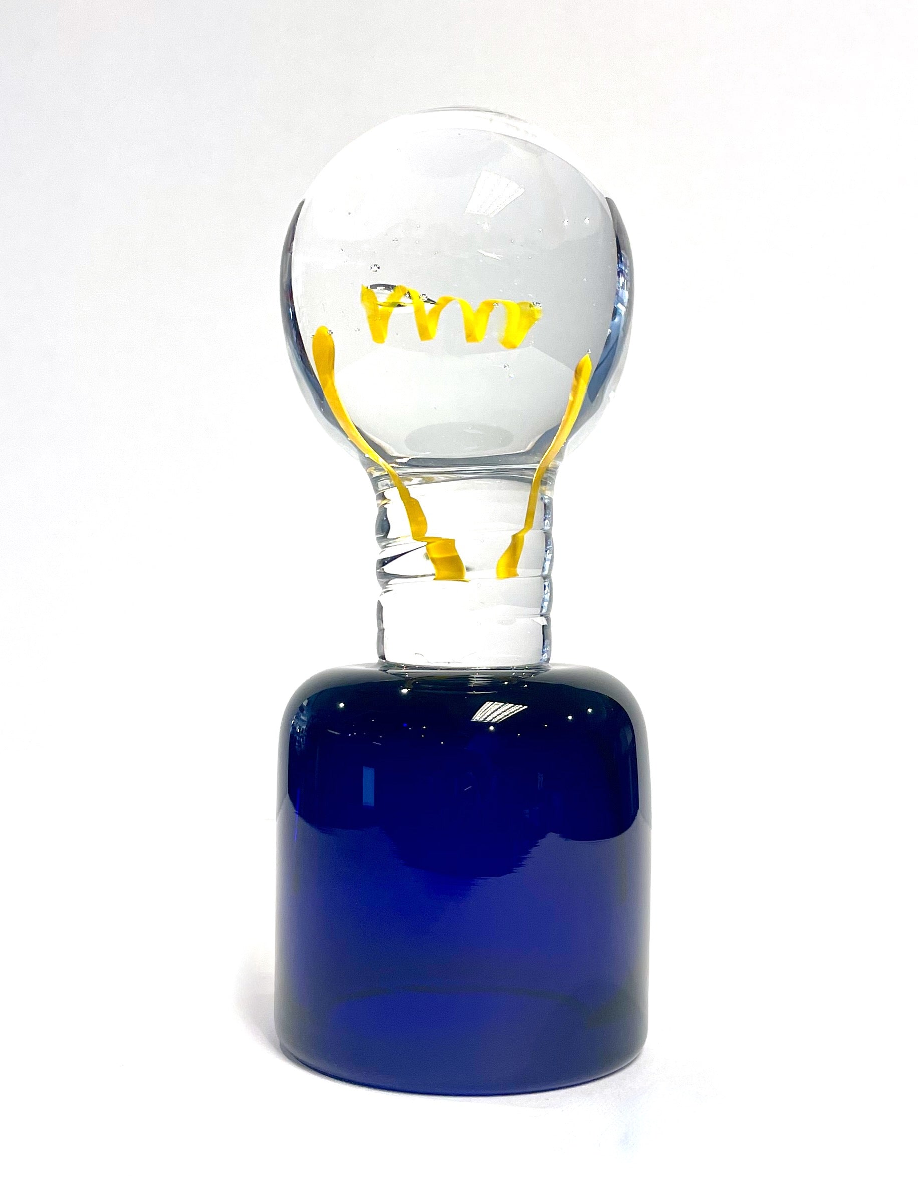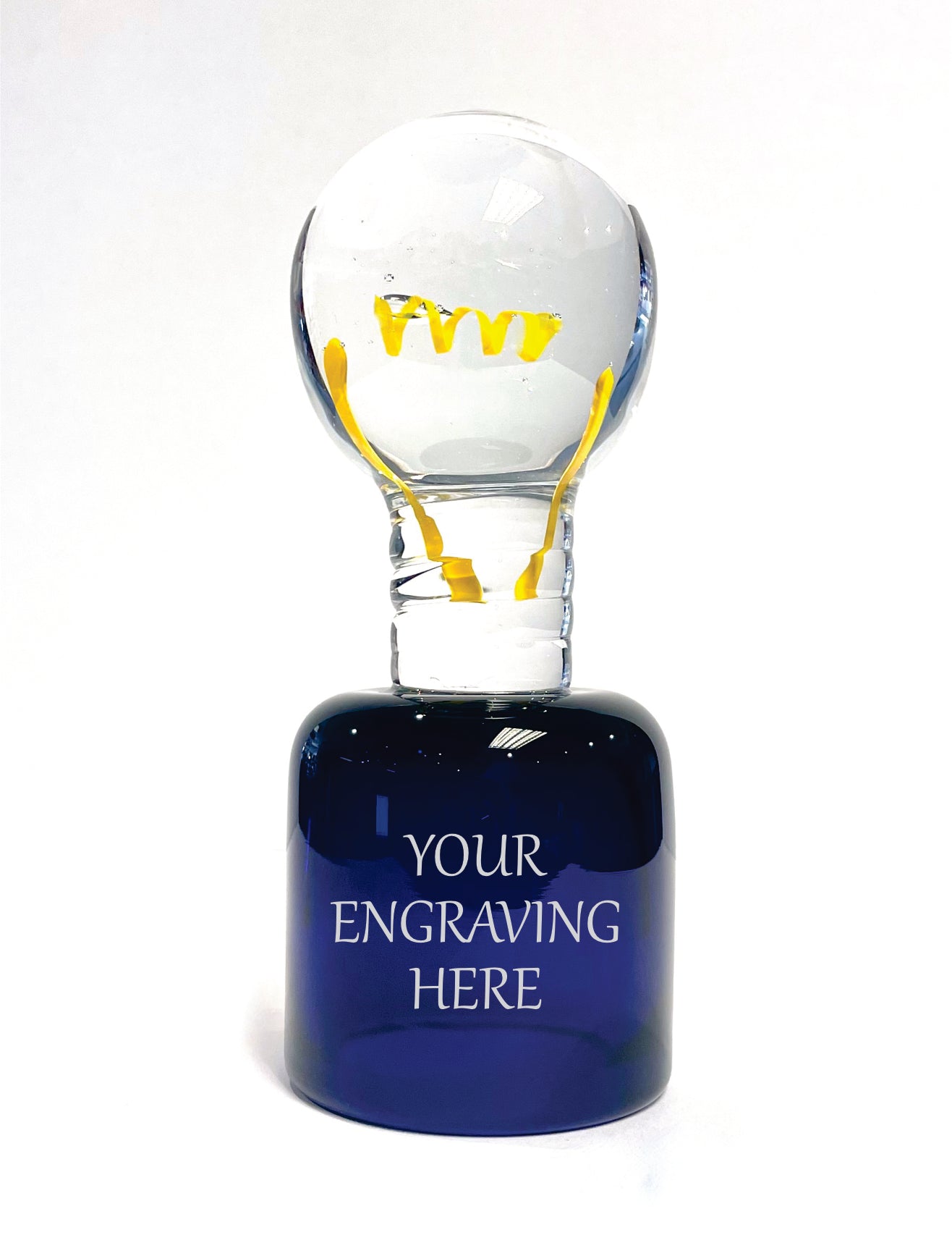 Light Bulb Glass Sculpture Blue base Individually made by hand by one of our glass-making experts.