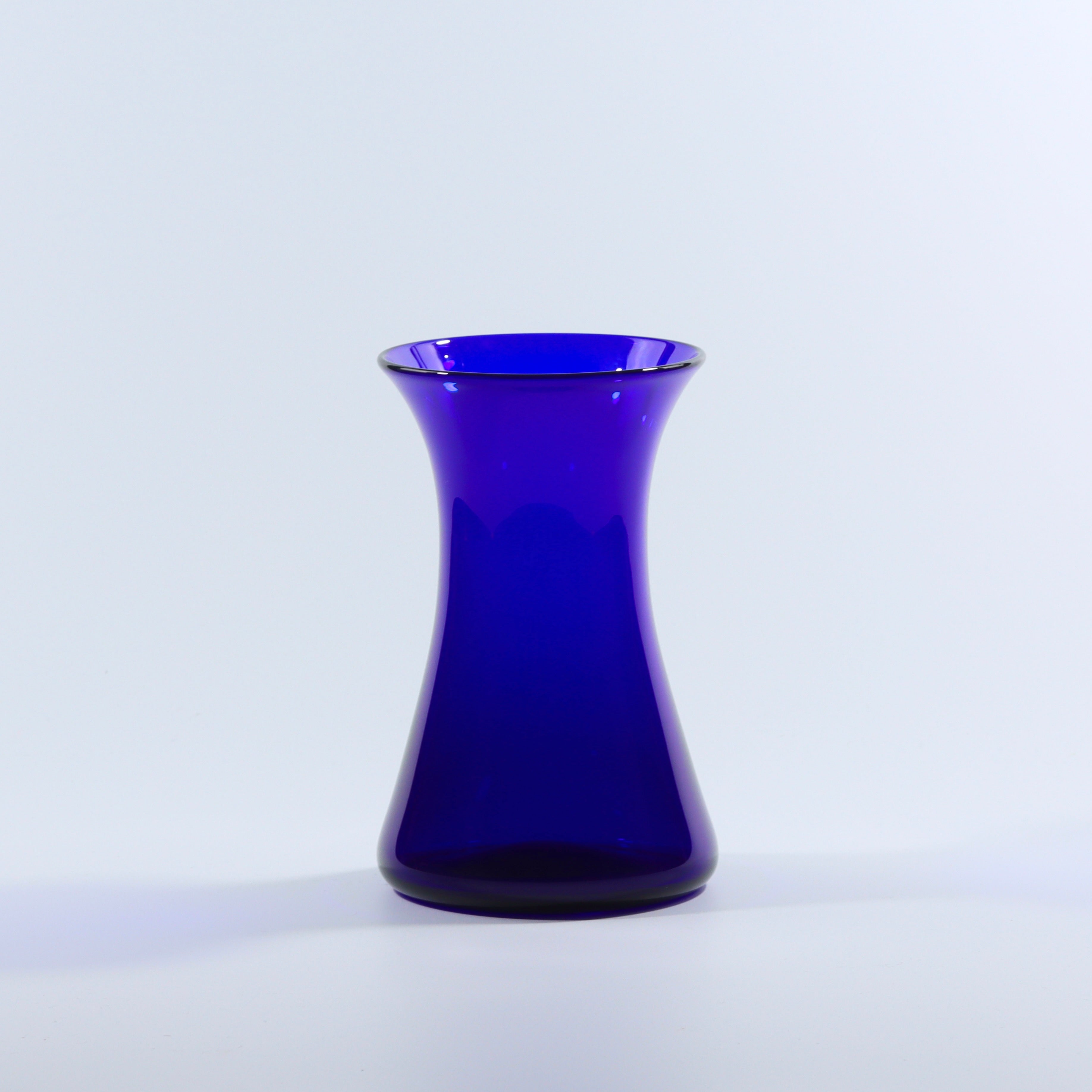 Perfect for a mantelpiece or at the centre of a table, this gorgeous small Bristol blue glass Lily vase is shaped in the classic style and is just crying out for a bunch of lilies. The vase stands at a height of approximately 15cm.