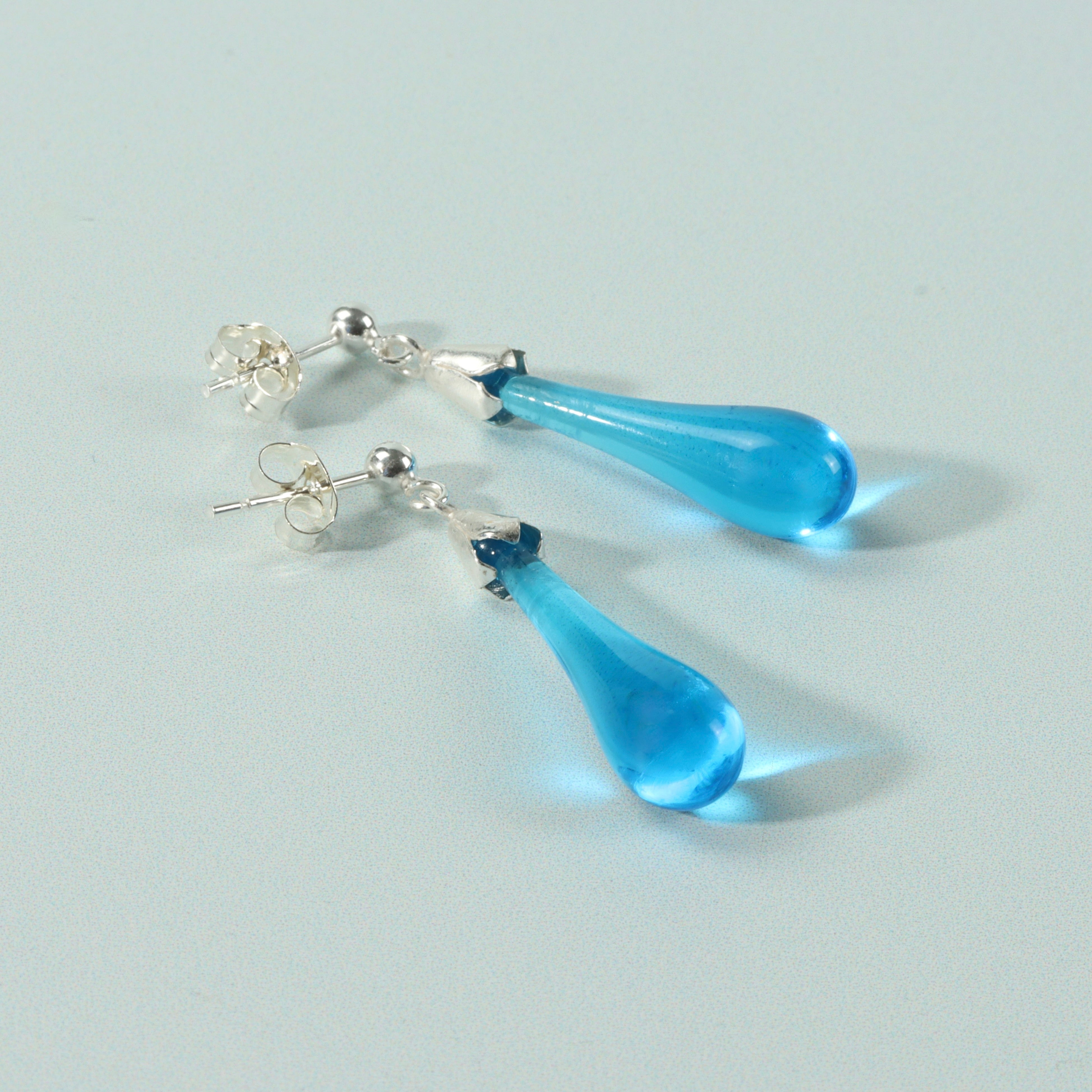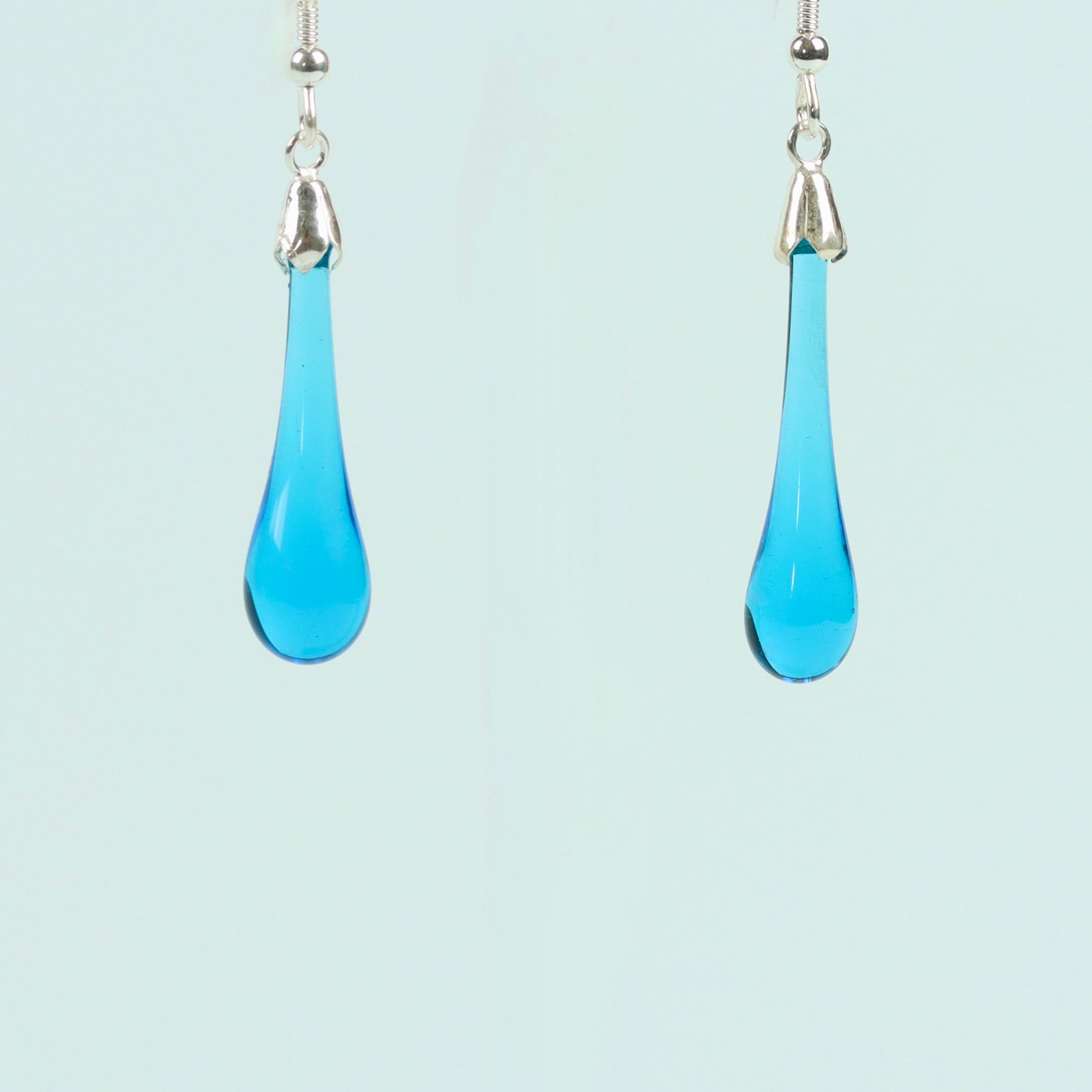Handmade aqua blue glass drop earrings from Original Bristol Blue Glass. A simple but very elegant design and suitable for dressing up or down.