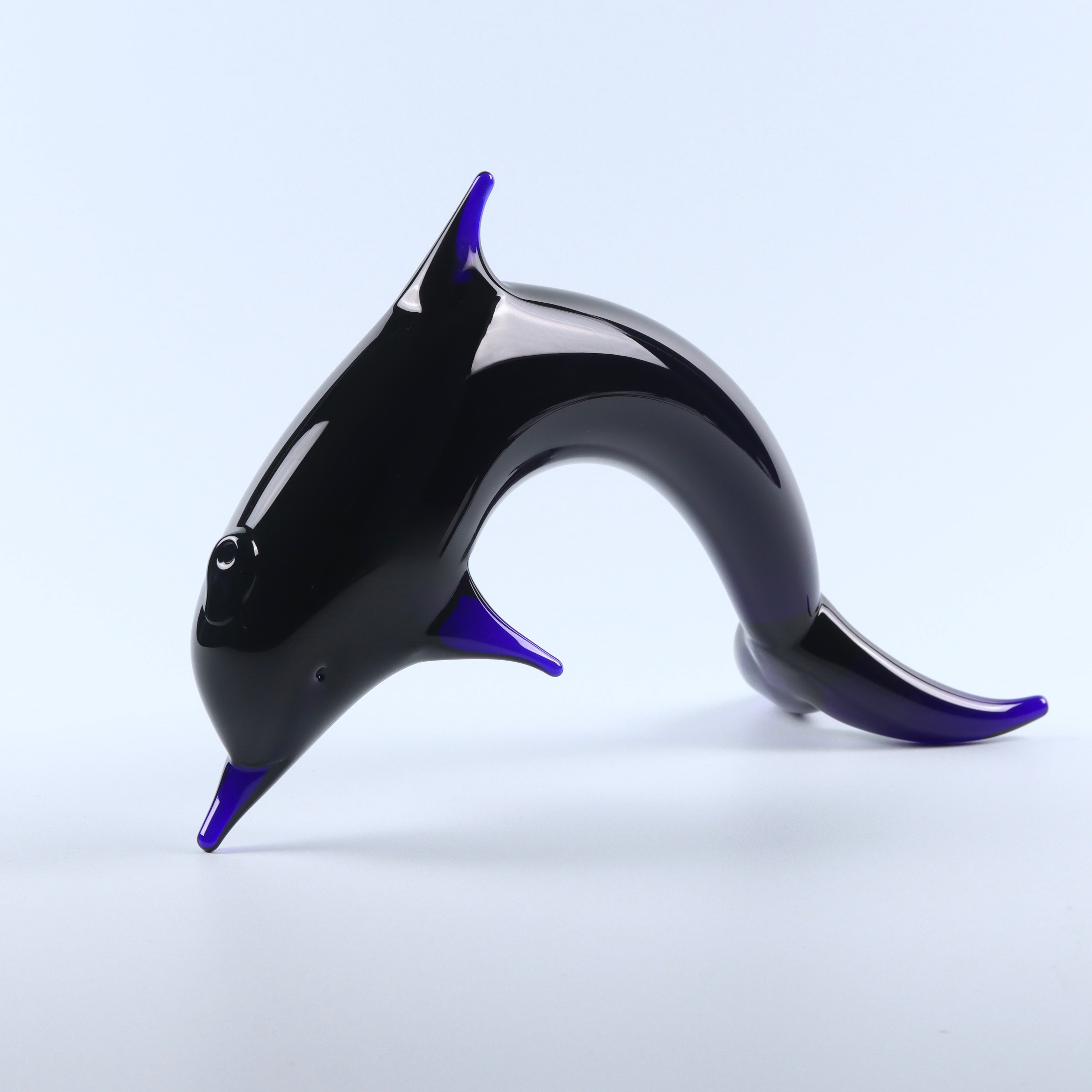 The poise and grace of a swimming dolphin is captured beautifully with this glass sculpture, fashioned from Bristol blue glass and made in Bristol.