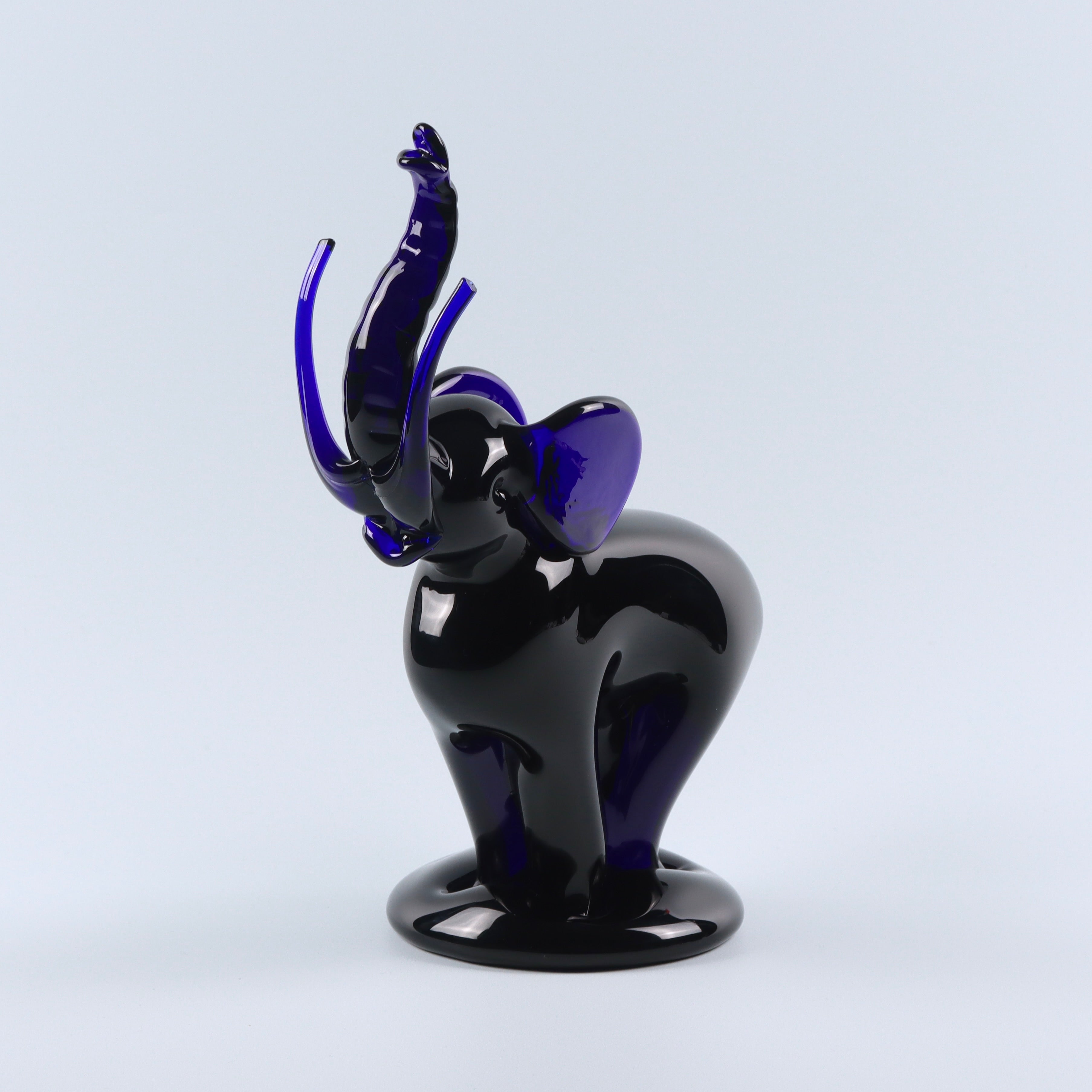 An exceptional piece of glasswork with very fine detail, this large blue glass elephant sculpture is one of our most impressive pieces. An elephant-lover cannot fail to be charmed by the beauty of thus ornamental masterpiece. Handcrafted in the UK and approximately 21cm tall.