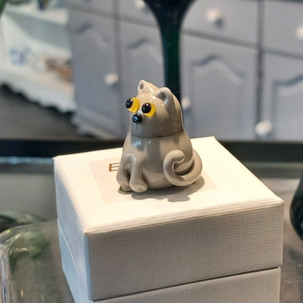 Dinky Grey Cat Glass Sculpture