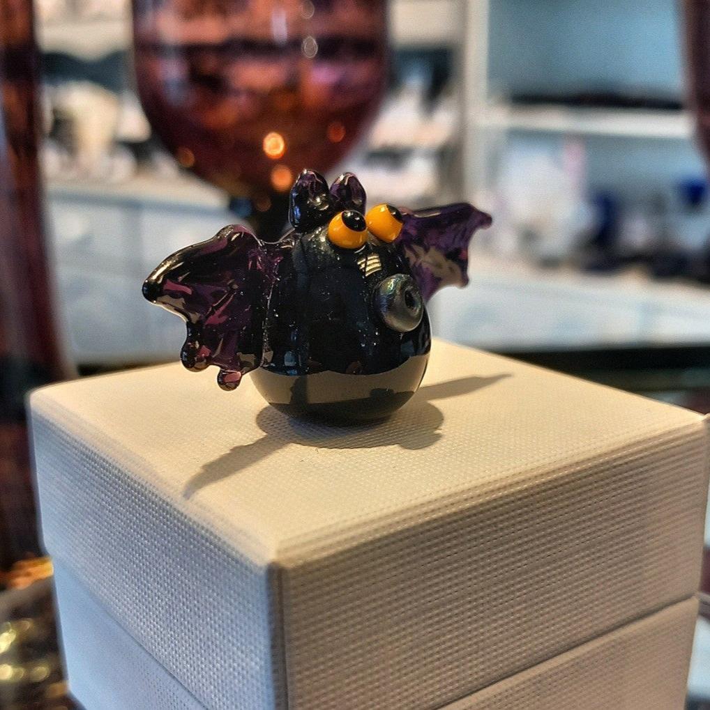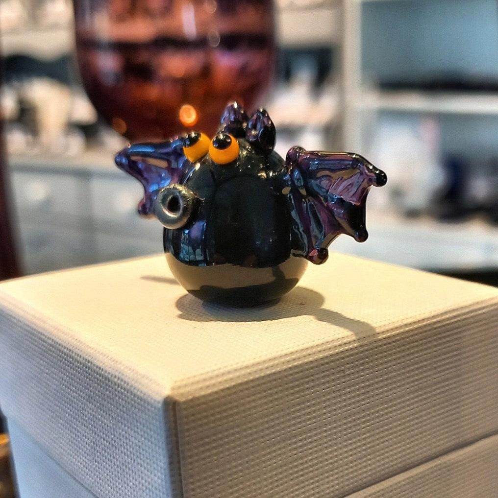 This dinky handmade bat gives joy to all, with its ooglie eyes!