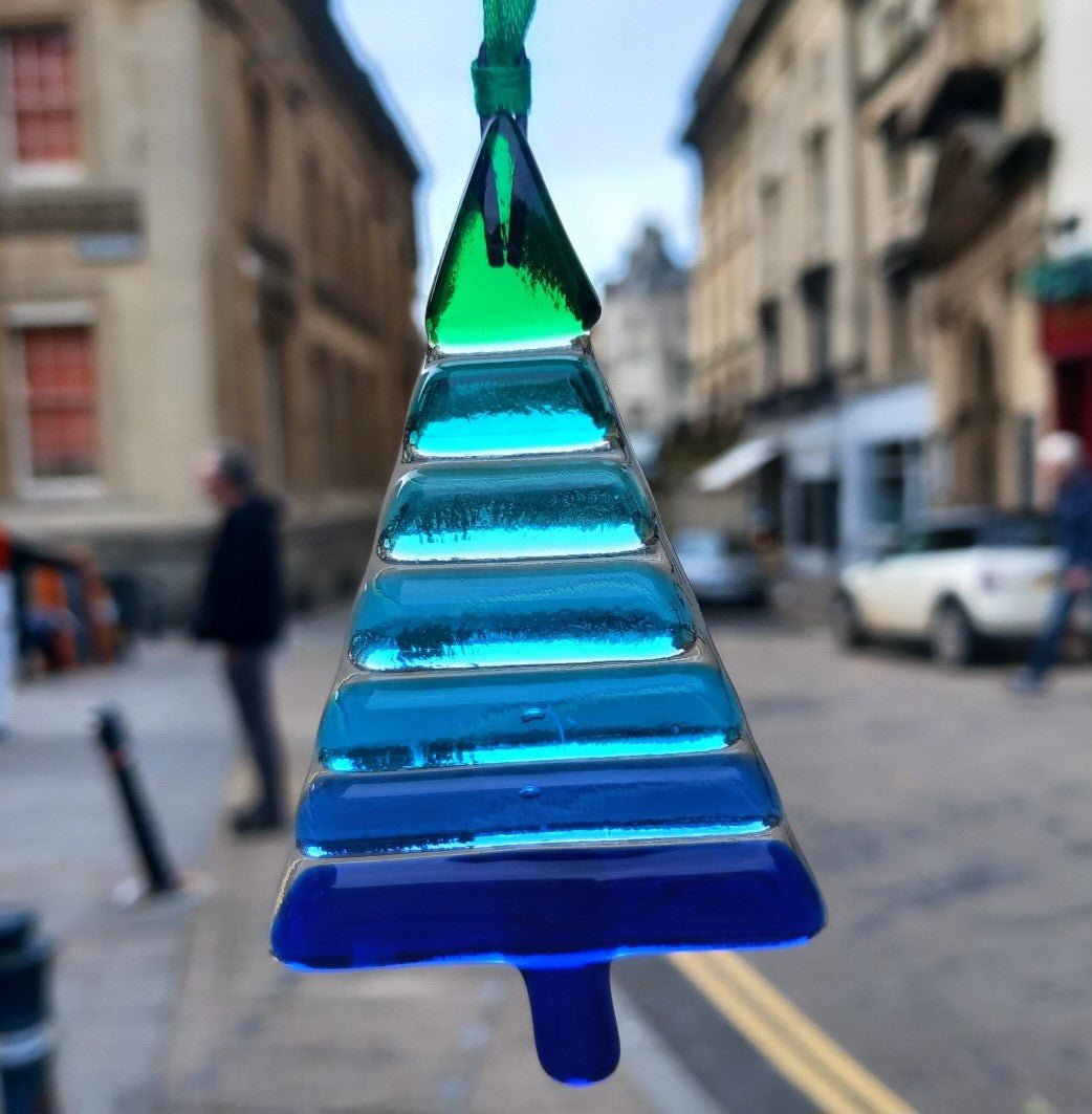 Fabulous Stripy Fused Glass Blue Christmas Tree... the perfect Christmas Decoration!