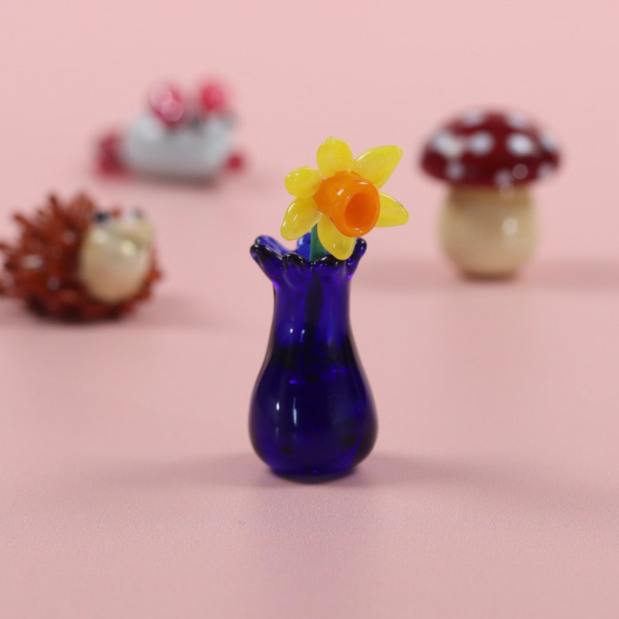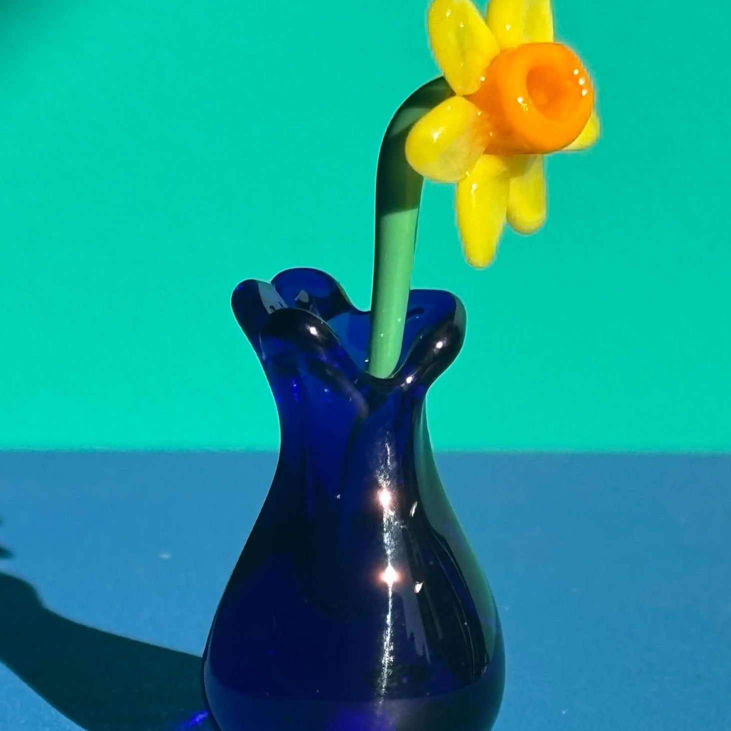 The Dinky Blue Vase and Daffodil Glass Sculpture