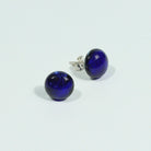 Coloured, sparkling and iridescent - dark blue dichroic glass and sterling silver studs.