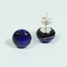 Coloured, sparkling and iridescent - dark blue dichroic glass and sterling silver studs. Each pair is kiln-cast repeatedly until the maker is content with the results. Made by hand in our workshop and delivered to you in a presentation box.