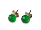 Deep emerald green stud earrings with sterling silver attachments. Handcrafted green glass stones are created from molten glass before being set in the studs. There are several stages to the process of making these earrings and each pair are made to order. No shortcuts.