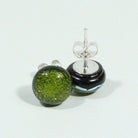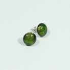 Coloured, sparkling and iridescent - lime gold dichroic glass and sterling silver studs.