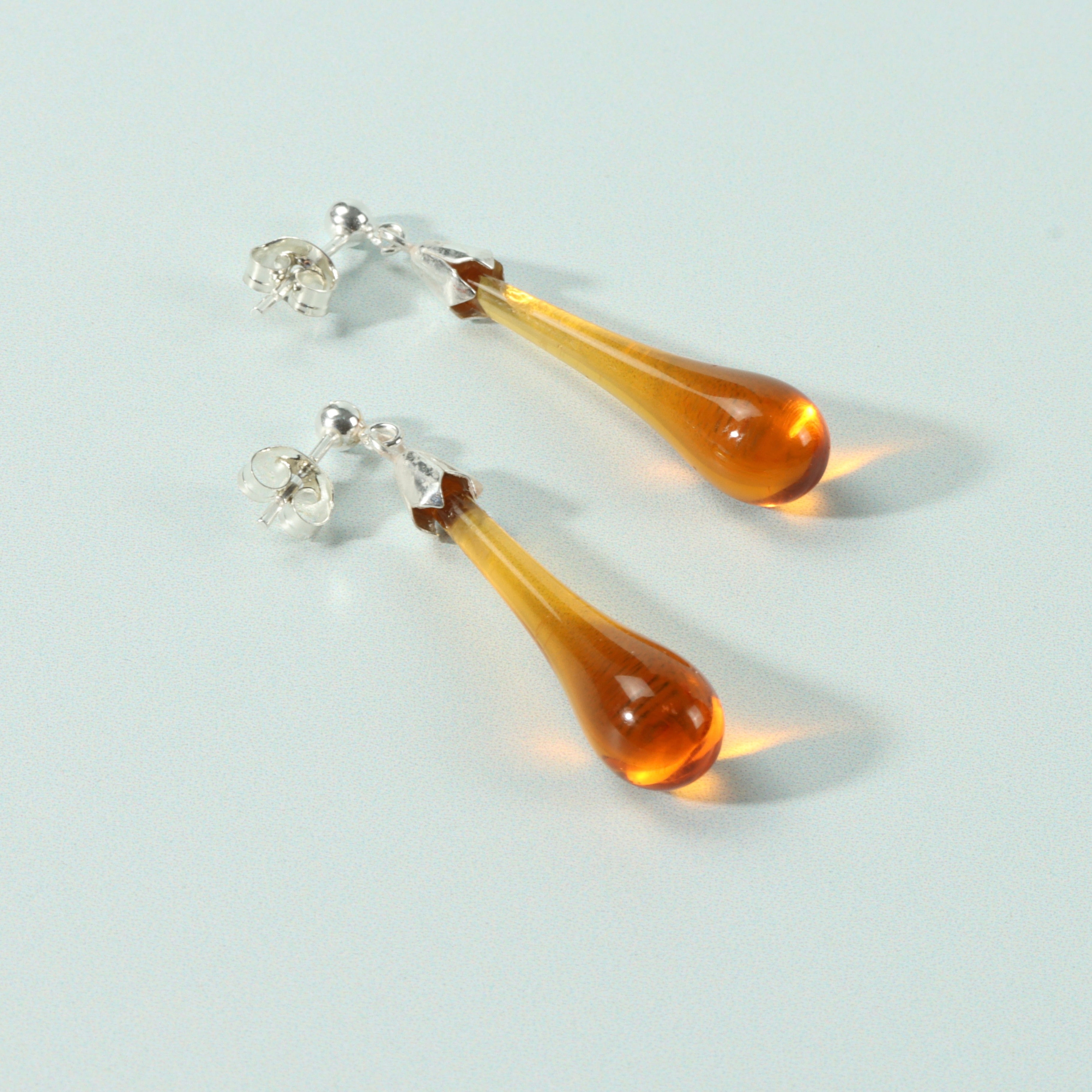 Choose from our beautiful collection of glass earrings in many different colours including cobalt blue, ruby red, pastel shades and amethyst. These coloured glass earrings have sterling silver wires and are made entirely by hand in the Bristol studio. If you are sending these as a present then don't forget to choose the gift-wrapped option!