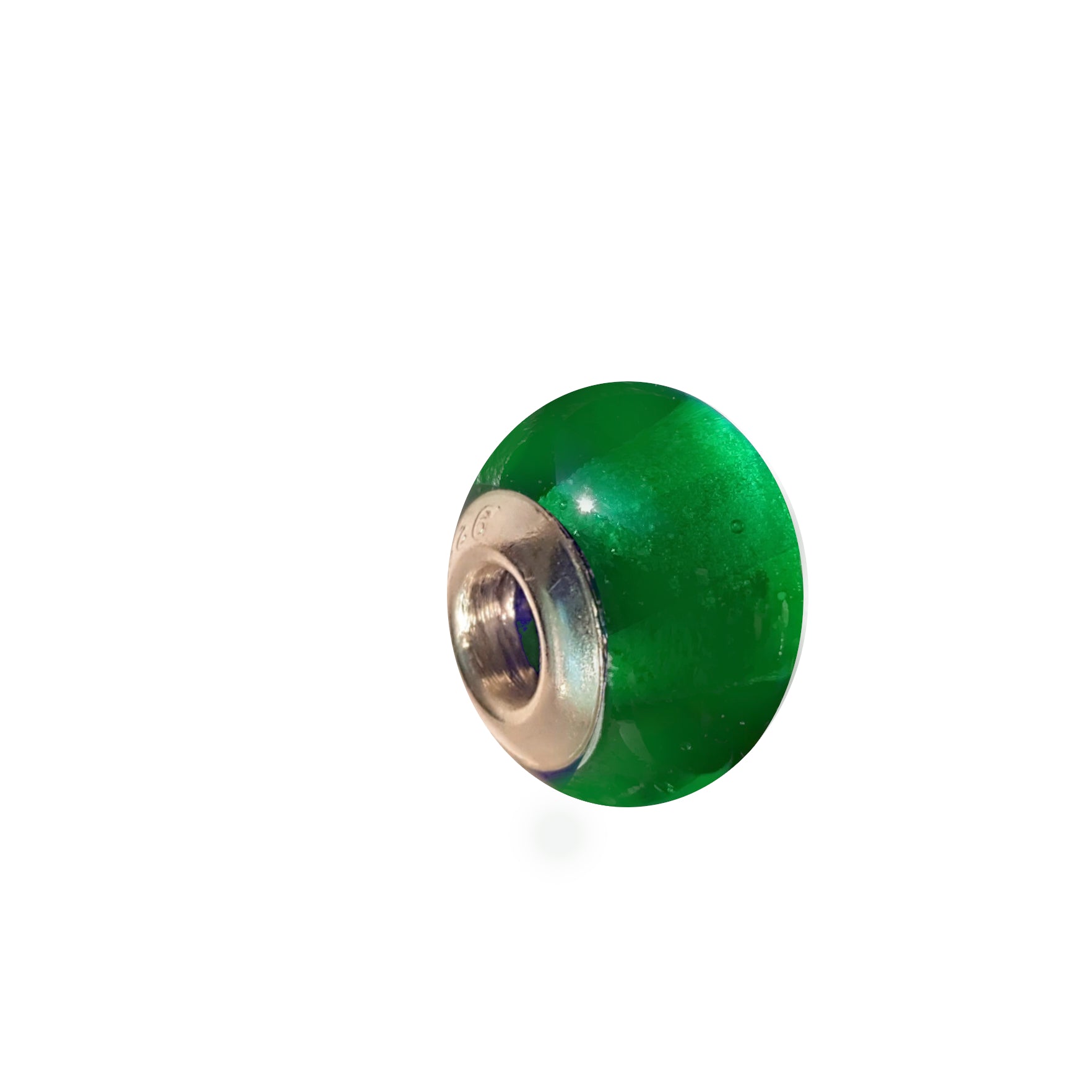 A beautiful emerald green glass charm bead made by hand. It incorporates a 5mm hole to allow you to thread it on to most bracelets (including Pandora bracelets) or on a necklace chain if you prefer. If you are purchasing this as a gift be sure to include the gift-wrapped option for that extra little bit of special presentation.