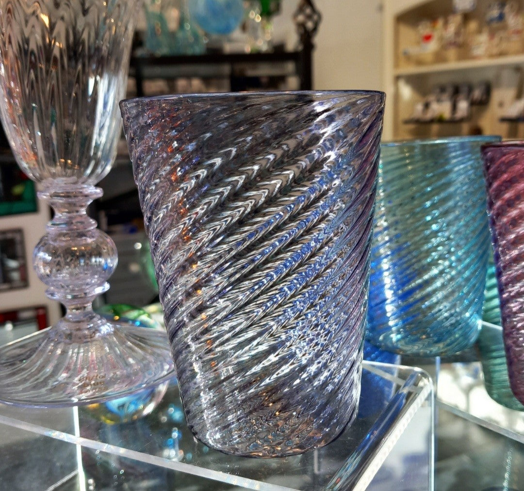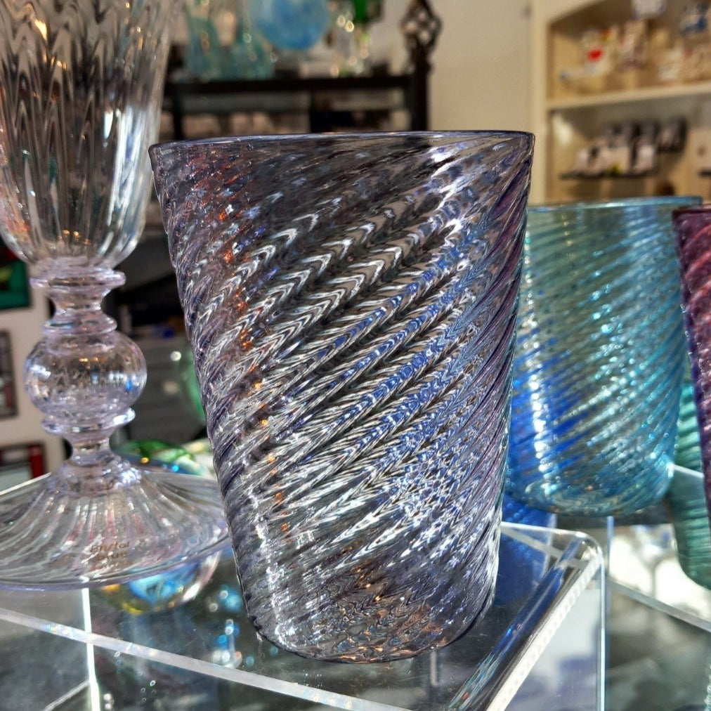 An elegant, handmade fine glass, handblown optic water beaker, which can be used for any cold beverage of your choice! There are six colours in this range, this being Hyacinth.