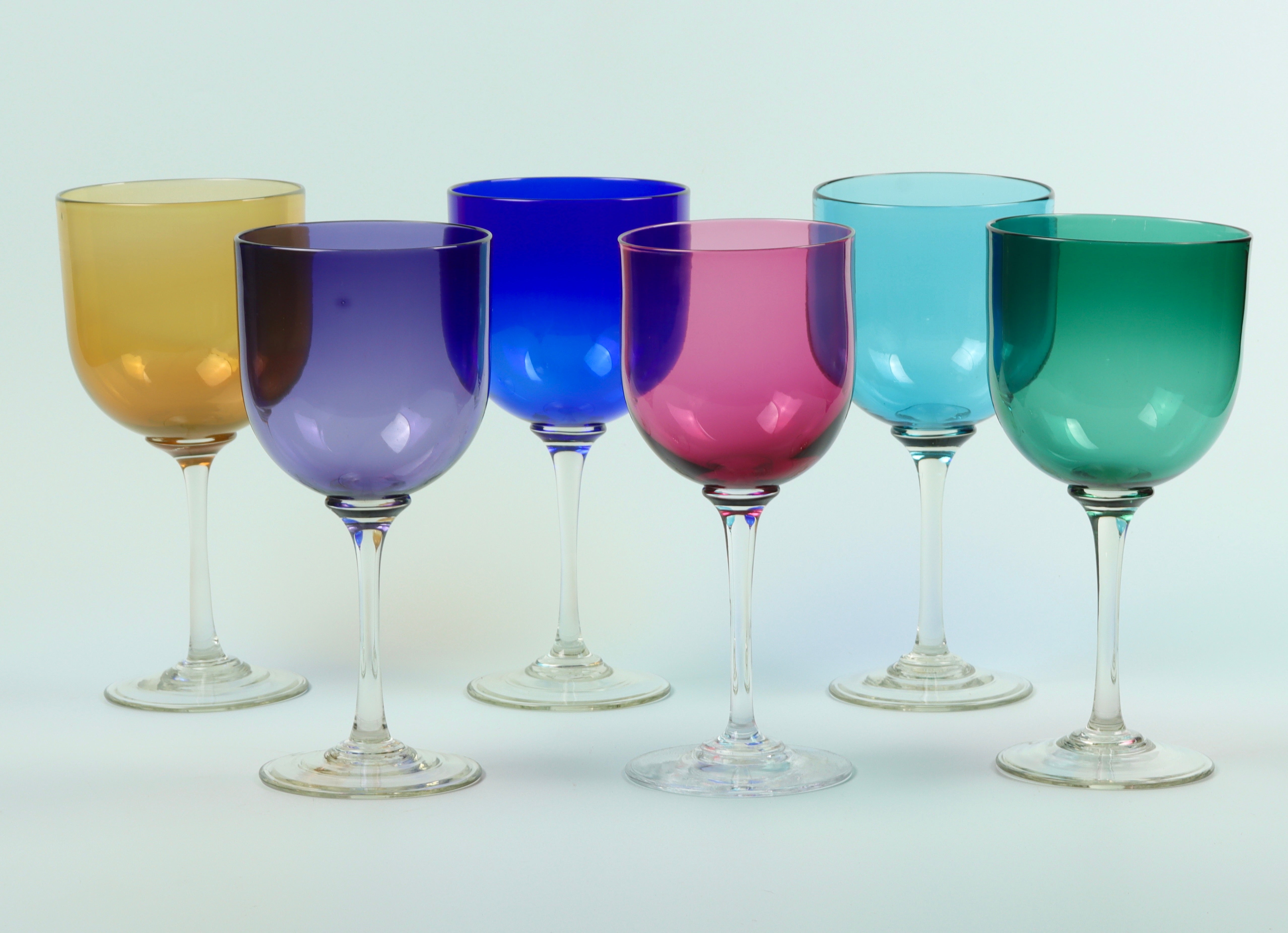 Our full range of drinking glasses made from cobalt blue glass for your favourite tipples can also be made from our seasonal glass melts including green , amethyst , ruby and aqua blue.
