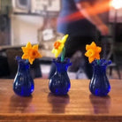 This tiny wonder is lamp worked by hand and stands at 1.5cm high (ish) and 2cms wide (ish).