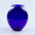 A traditional blue glass round vase for flowers, blown by glassmaking experts in Bristol.