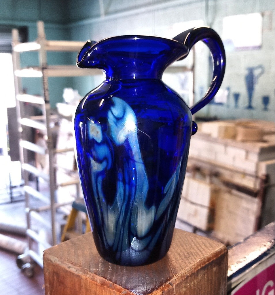 A traditional shaped jug with a contemporary look, this silver swirl blue glass jug is a work of art.