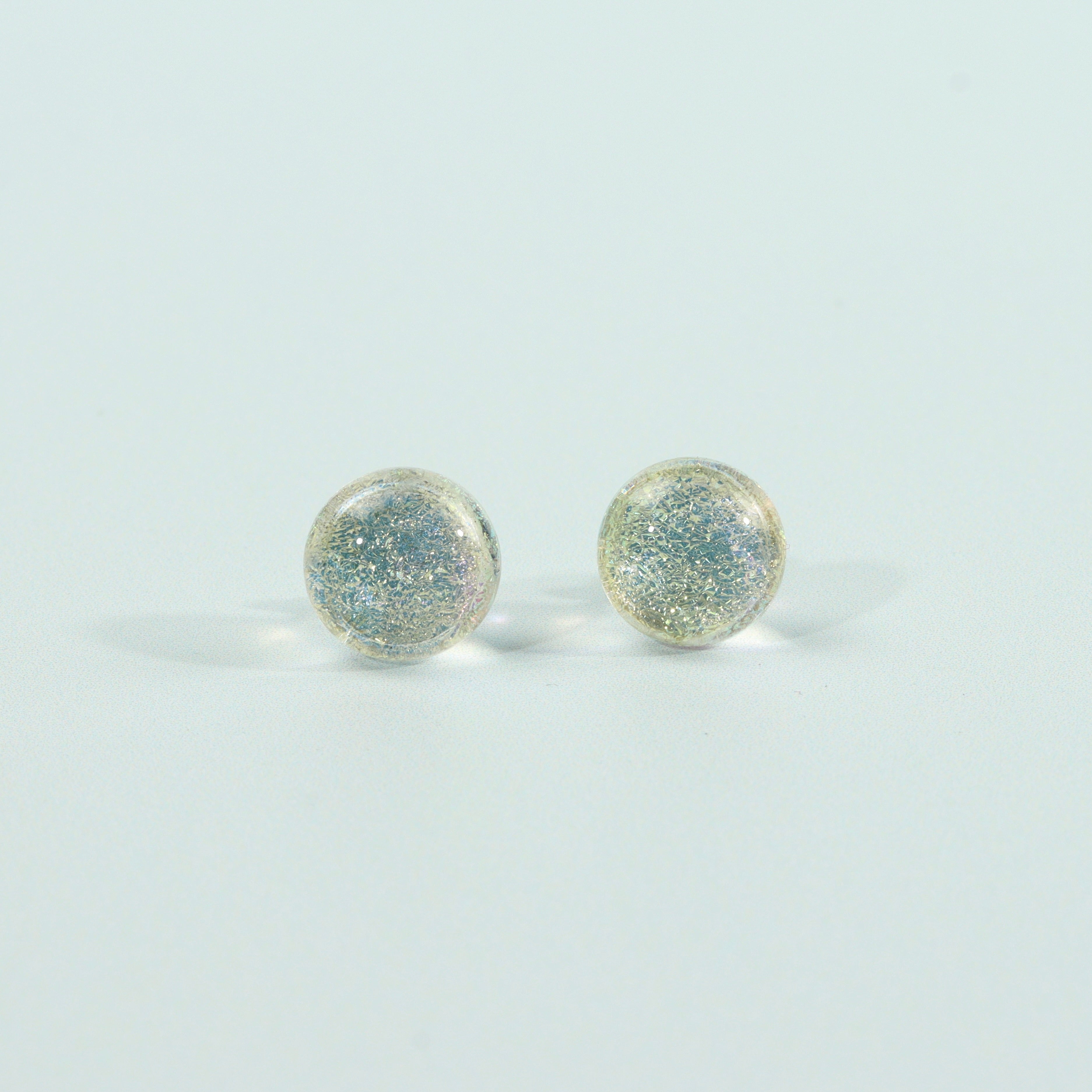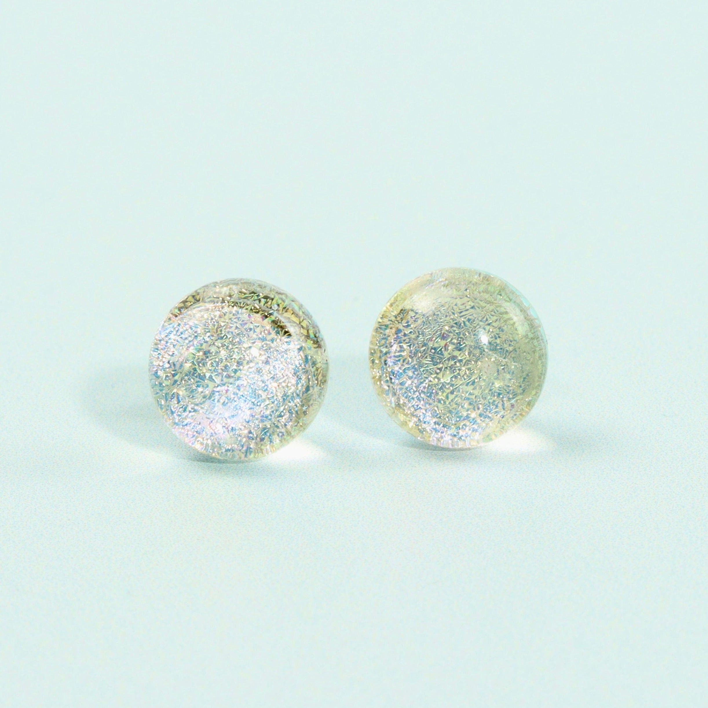 Clear Dichroic Pearlescent Glass Stud Earrings