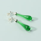 Emerald Green glass hook earrings and drop pendant necklace can be bought as a set right here. The necklace comes in 16" and 18" sterling silver chain sizes with a choice of 'marina' or 'snake' chain. The earrings are sterling silver studs. The perfect blue glass gift at any time of the year and delivered in a presentation box.