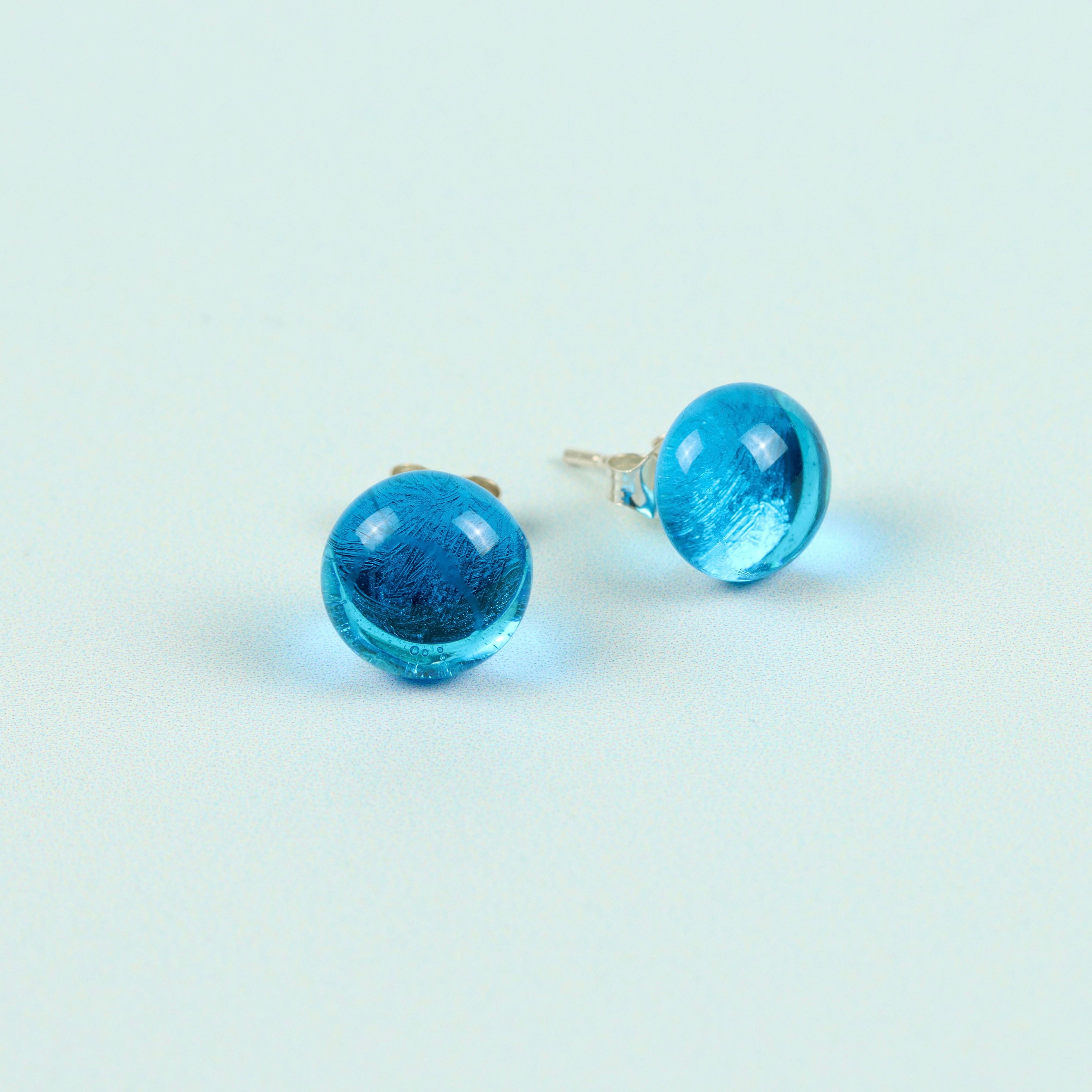 Hand-made glass stones on sterling silver studs.