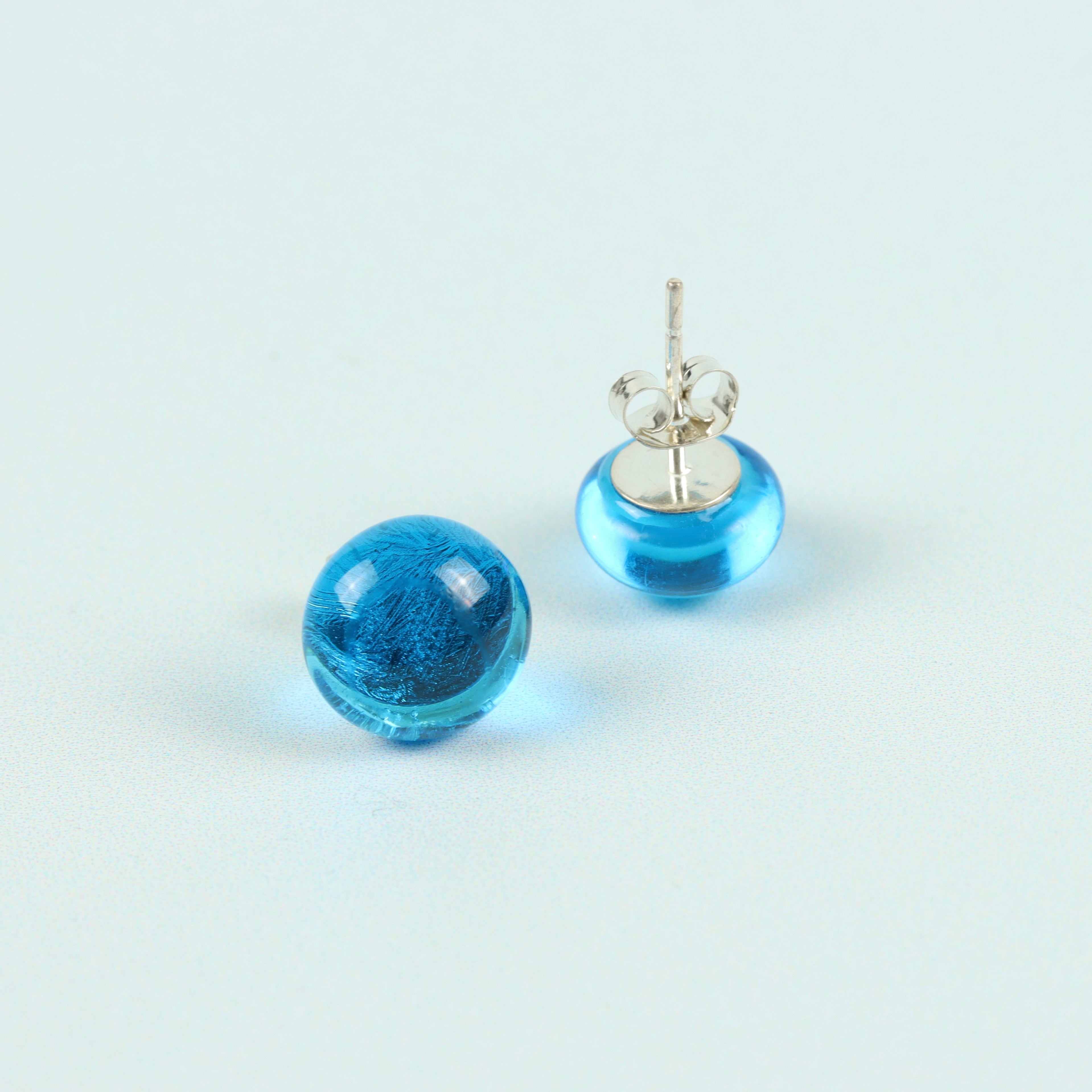 These dazzlingly-beautiful aqua blue glass stud earrings are approximately 6mm and perfectly-formed.