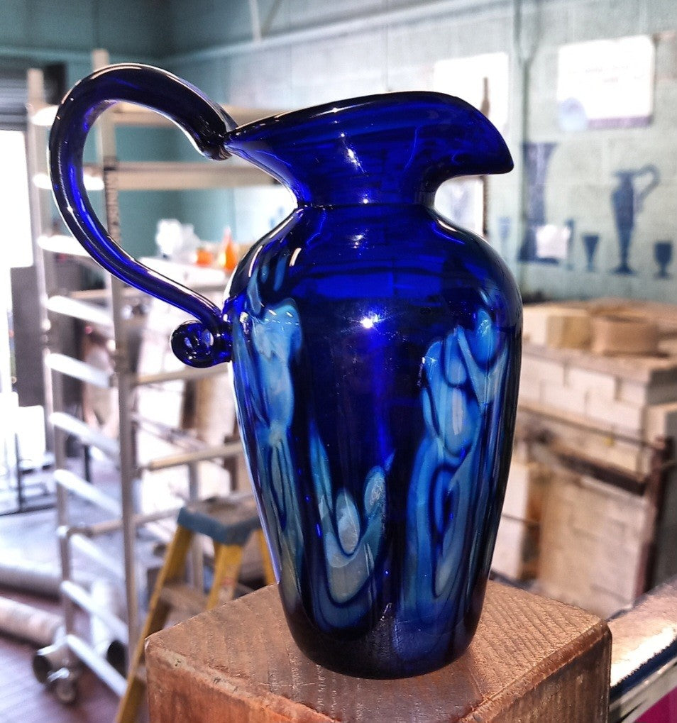 A traditional shaped jug with a contemporary look, this silver swirl blue glass jug is a work of art.