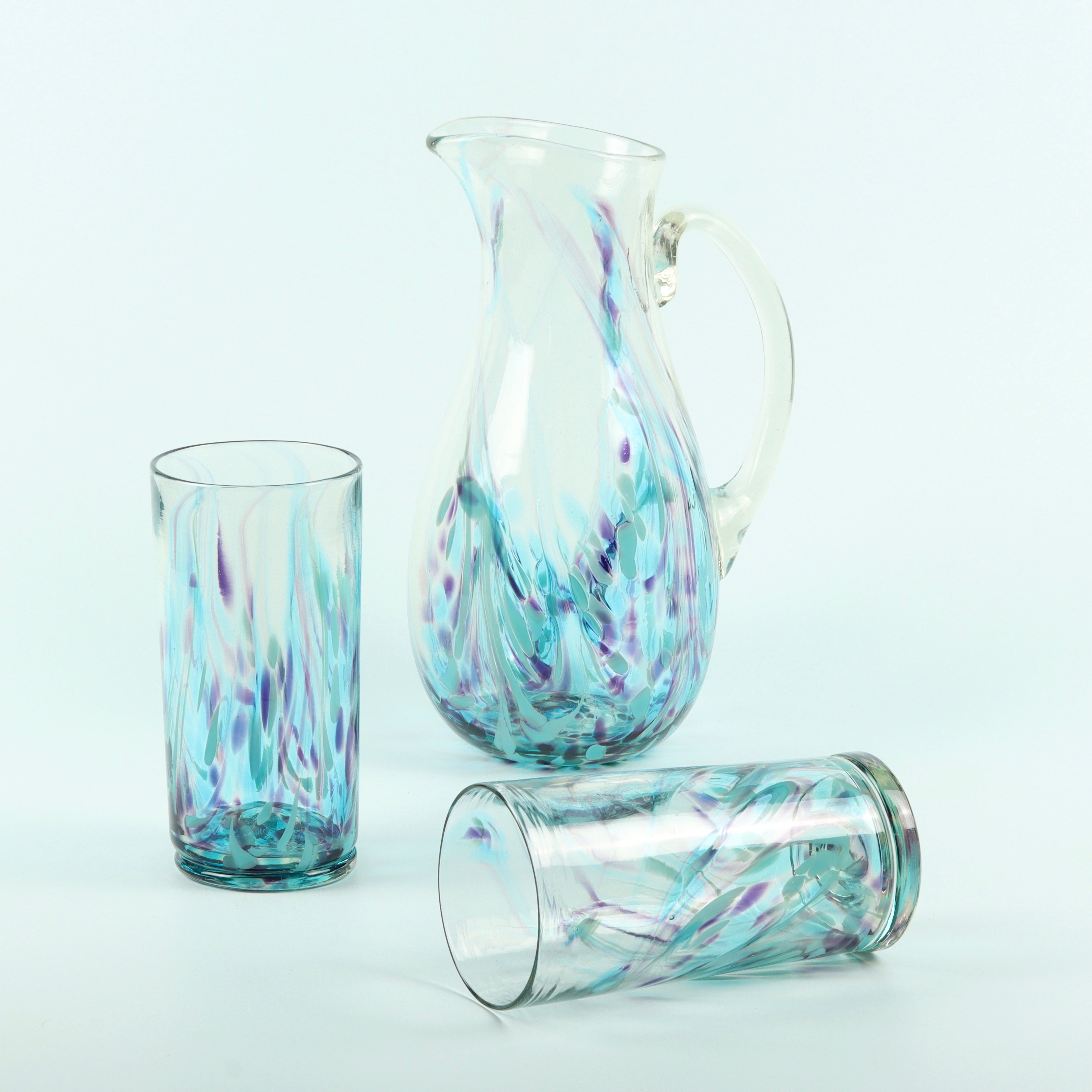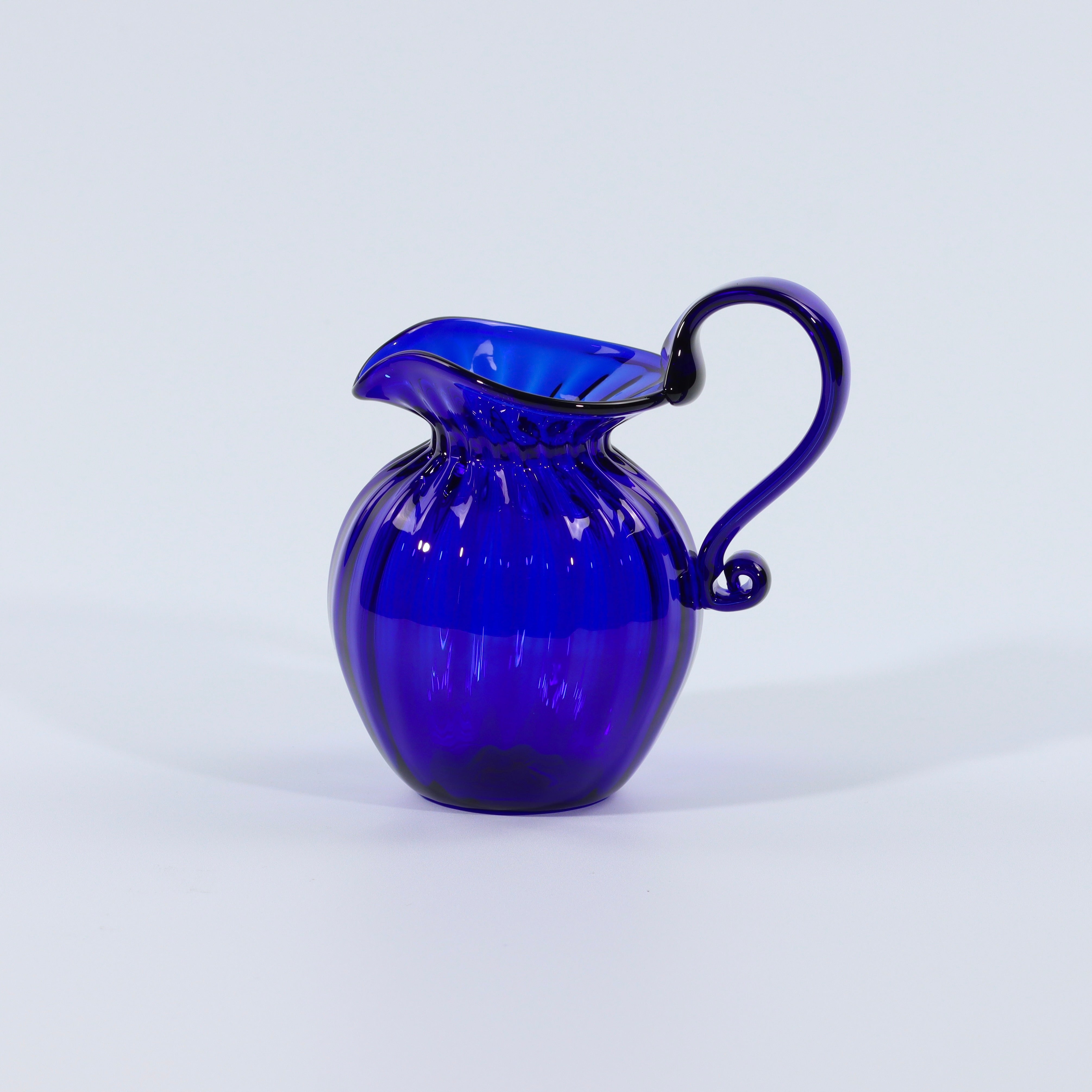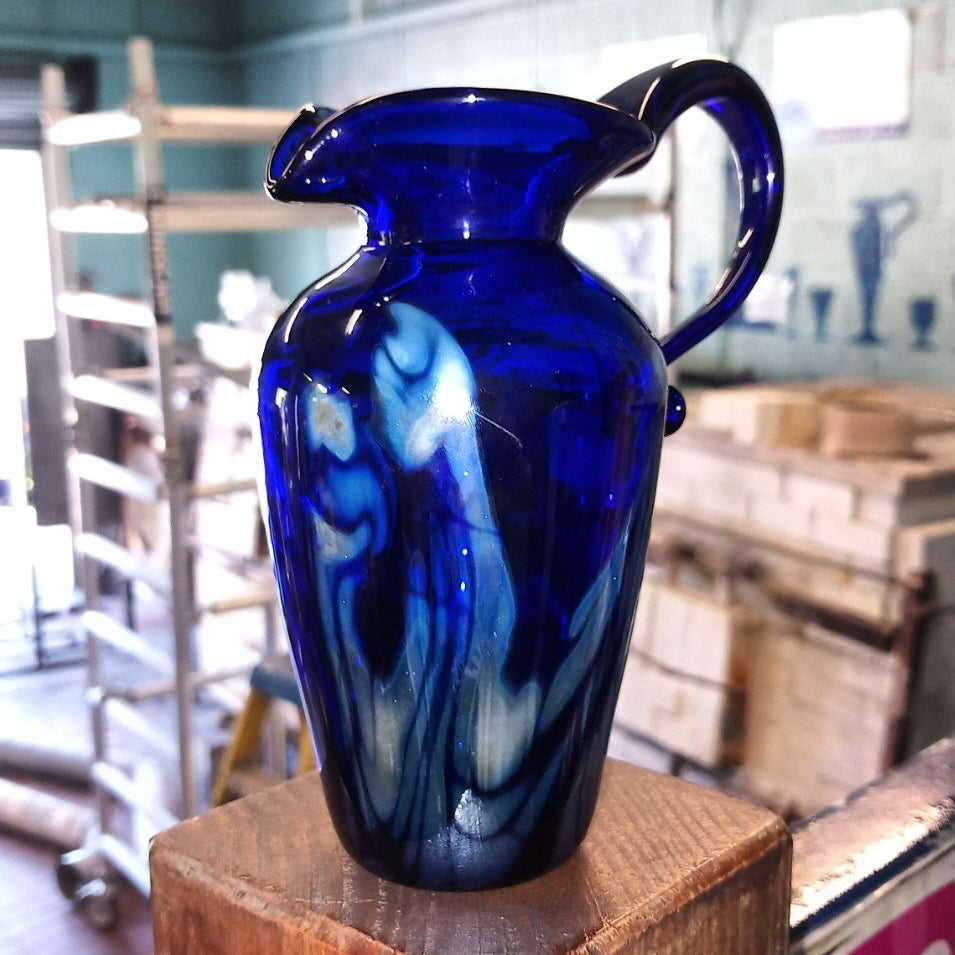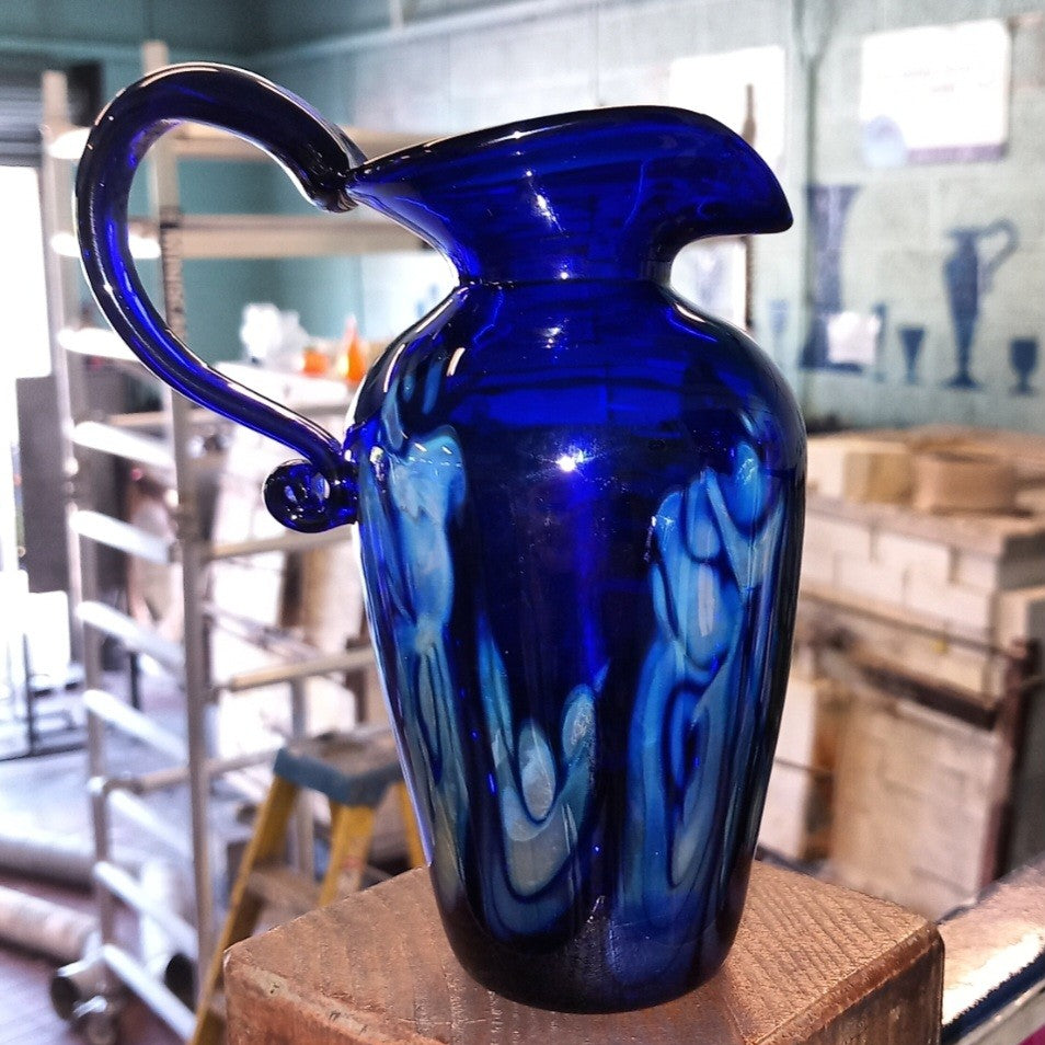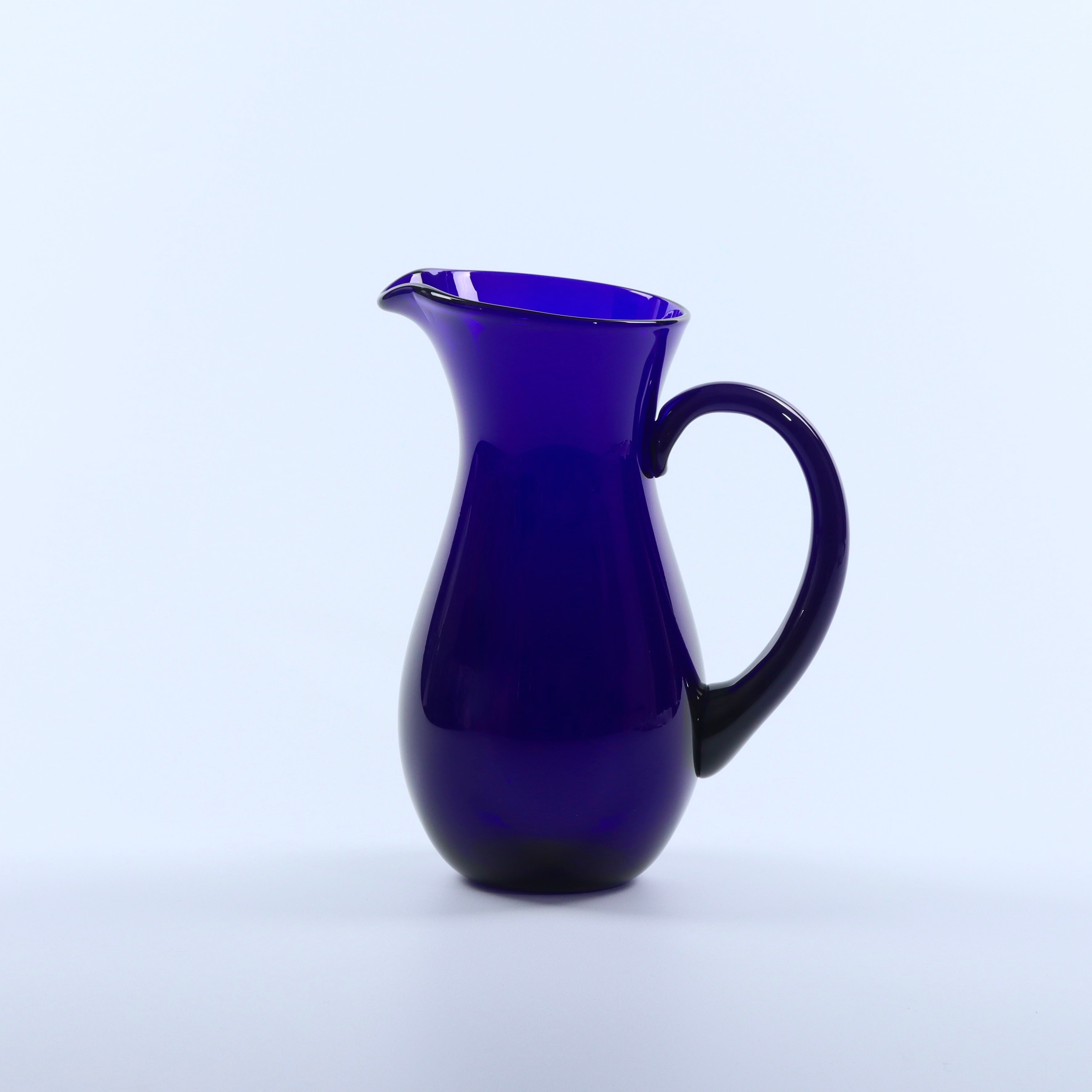 The blue glass jugs are made from a microscopic amount of cobalt to give it that deep blue depth of tone. Other pigmentations are also available, feel free to enquire about your favourite colour.