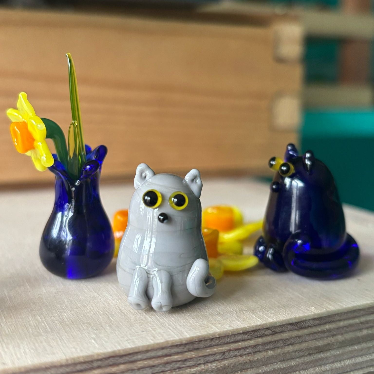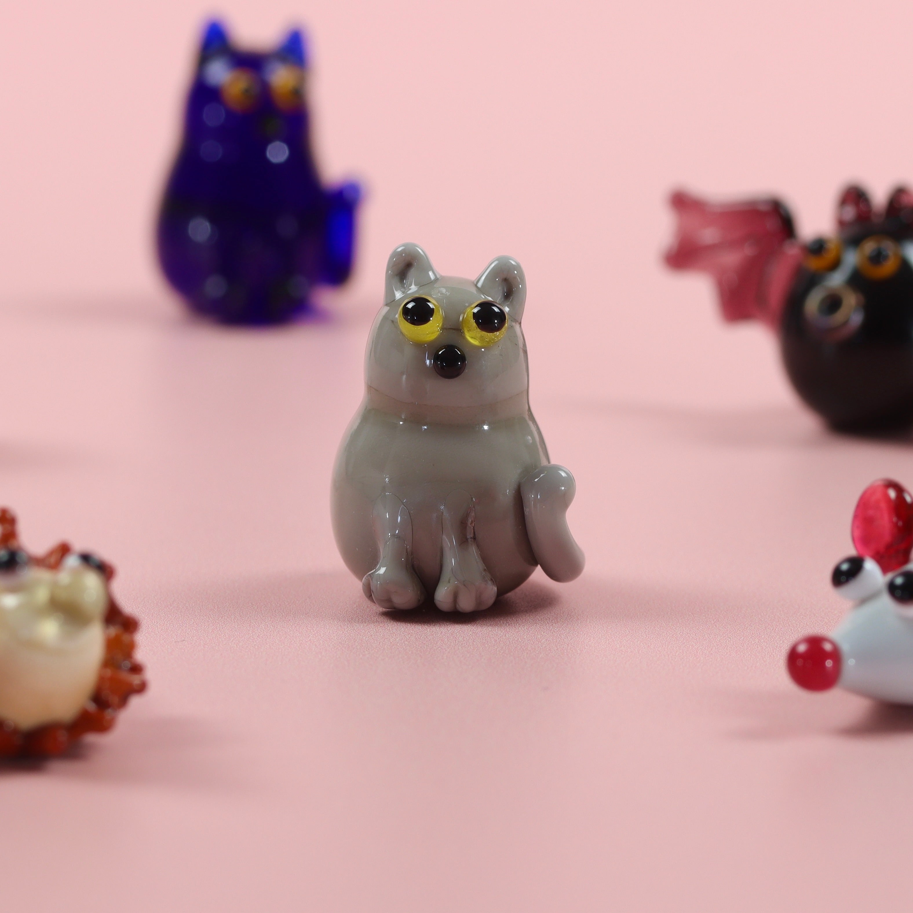 This dinky handmade glass cat gives joy to all, with its curly tail and ooglie eyes!