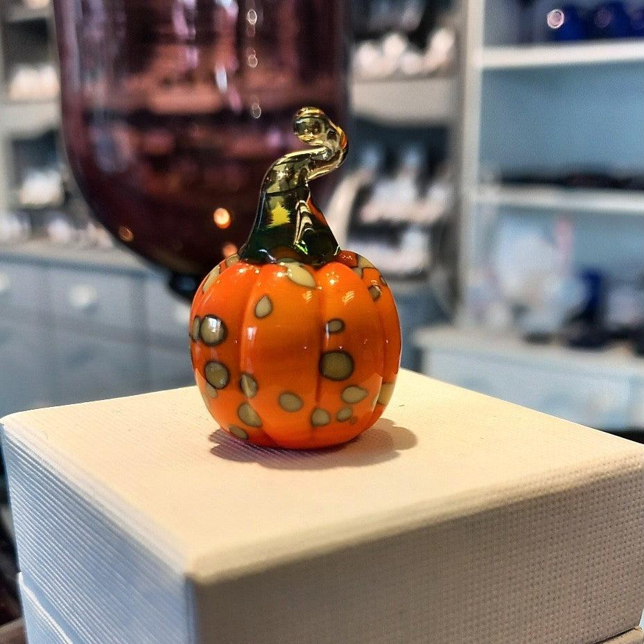 A pumpkin is for life - not just for Halloween! All the spirit of Halloween in a tiny gem - have this glorious specimen grace your home in the harvest season! A beautiful handmade glass ornament and as with all our products, it is exclusive to us.