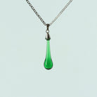 A gorgeous emerald green glass drop pendant necklace, matching these earrings of the same design and colour. Available in two sterling silver chain lengths of 16" and 18", the timeless elegance of this necklace will grace many an outfit and make you feel a million dollars. As with all our products, this green glass necklace is handmade in the UK.