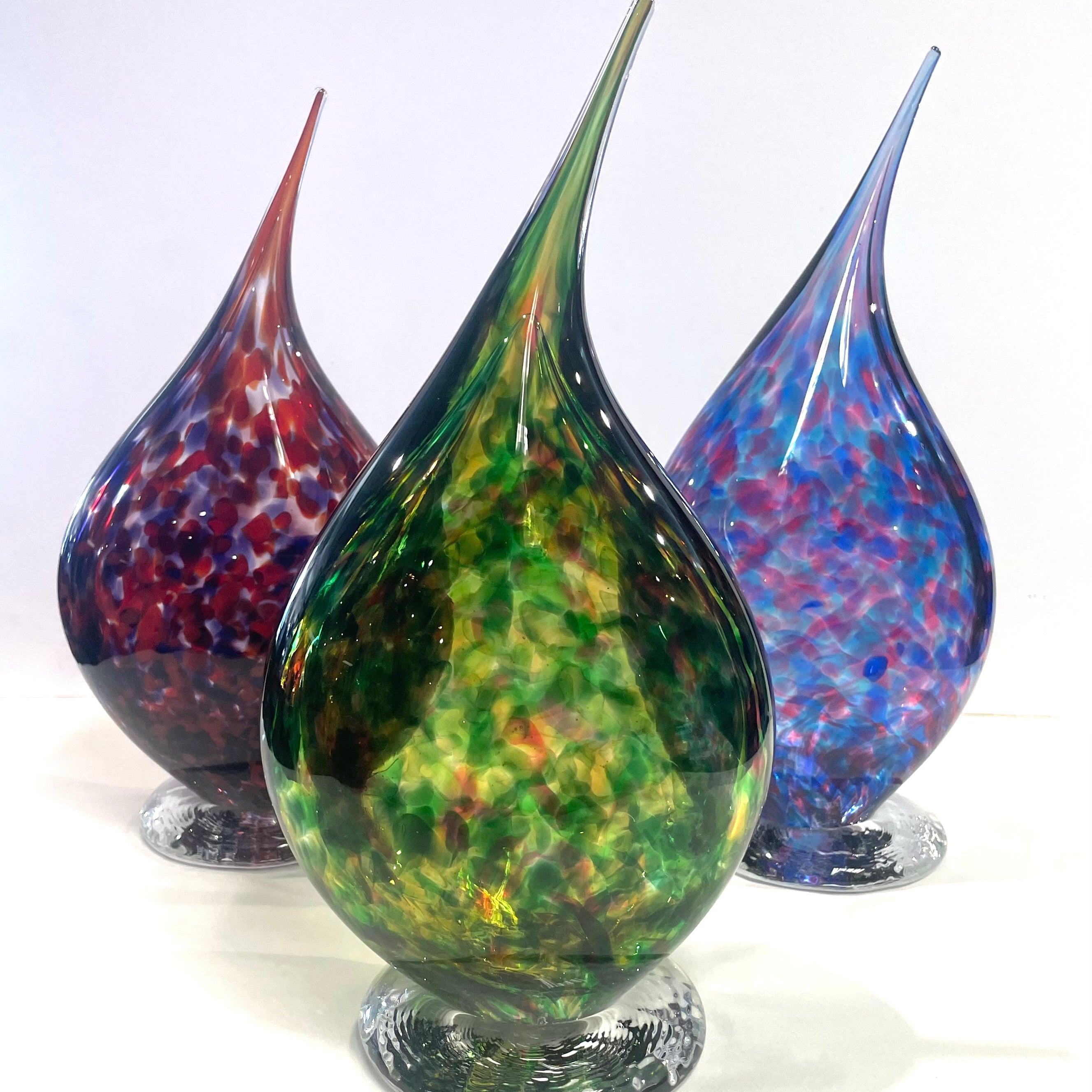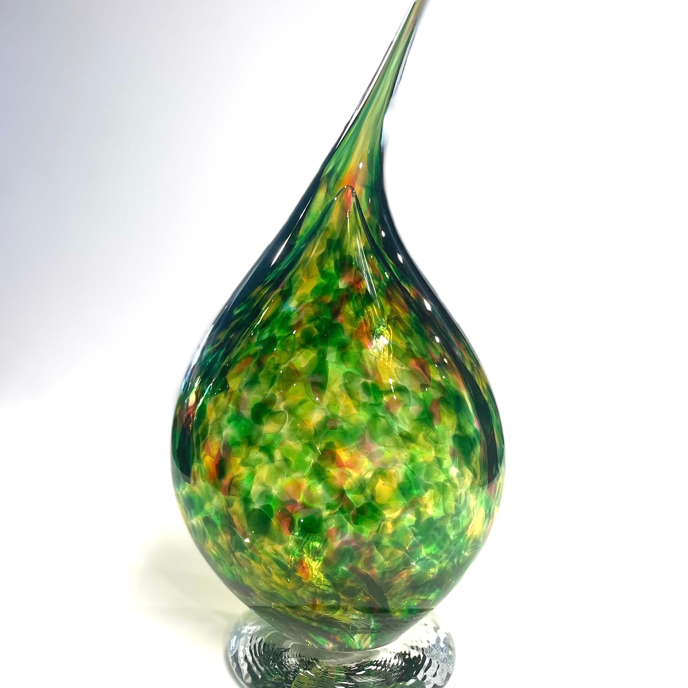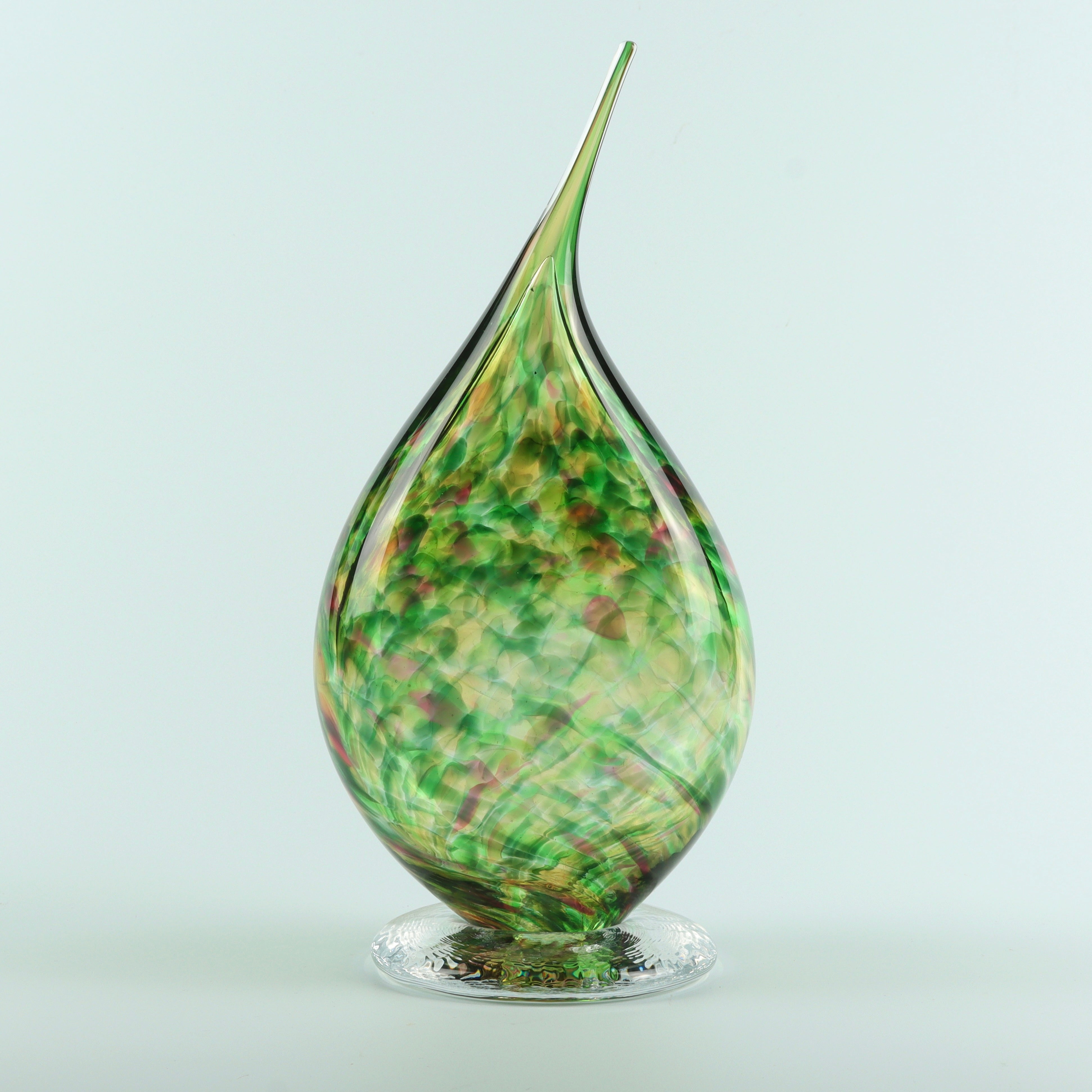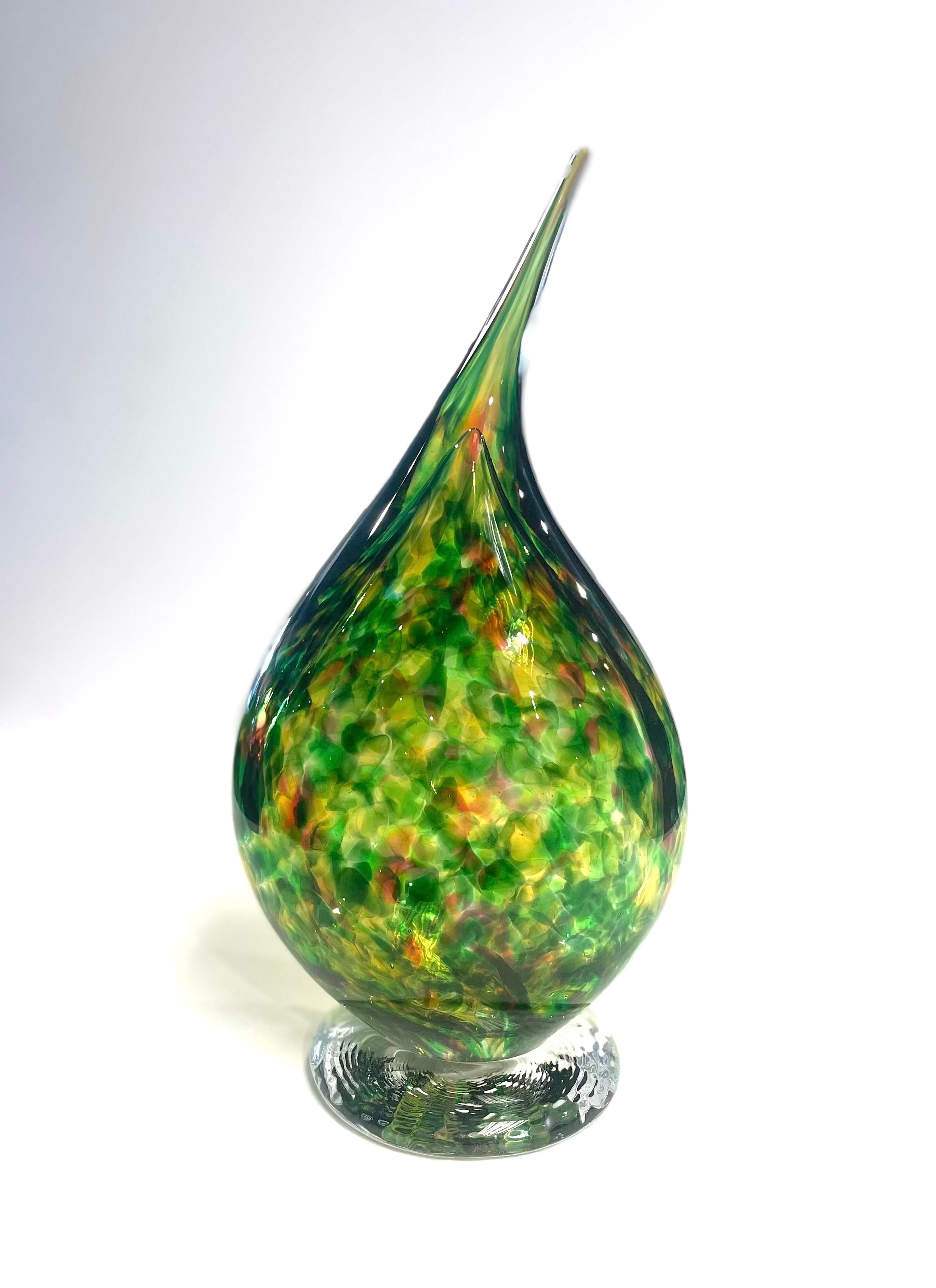 Bristol blue glass have created this beautiful Flame Sculpture, made up of Green, Amber Green & Fuchsia Flame Sculpture colours.