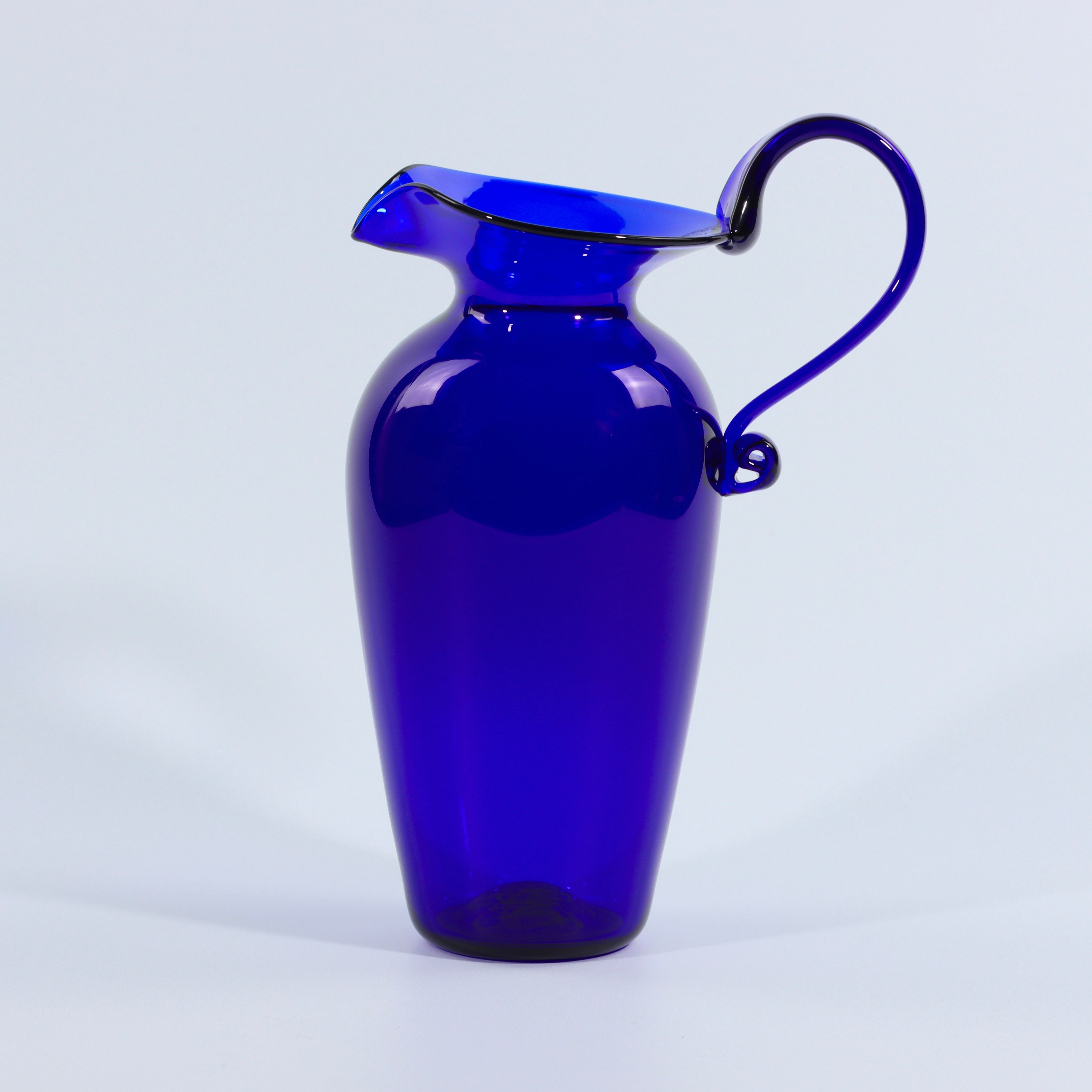 A classic design and a jug that you will fall in love with. This medium tall blue glass jug is made from Bristol blue glass with expertise, skill and the utmost precision by our glassblowers. The intricately-ornate handle and pouring spout marry beauty with functionality. The height of this jug is 18cm (7") and it holds roughly one pint.