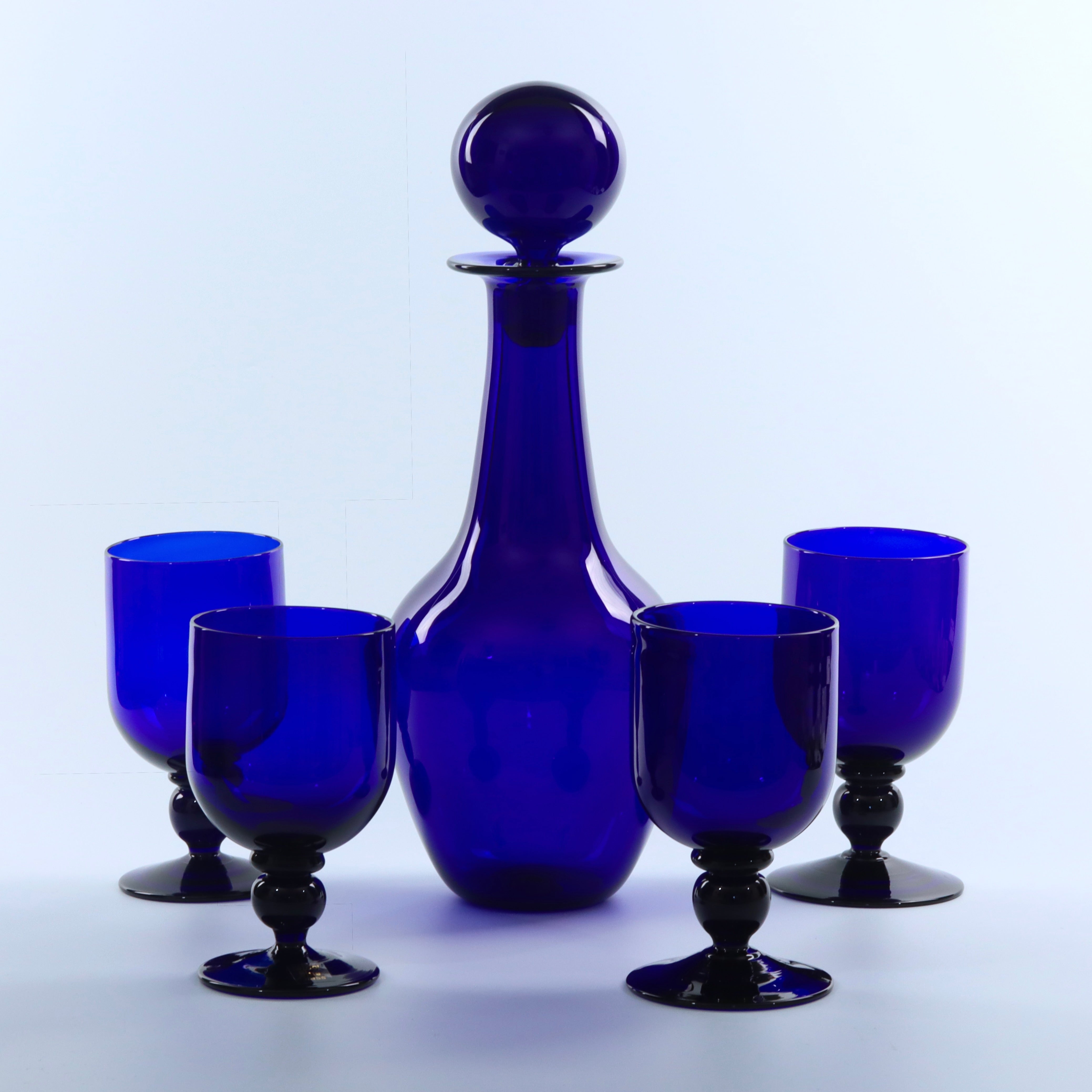 A decadent way to serve your wine. Try our stunning Bristol blue glass wine decanter and four piece goblet set, which will look resplendent on any sideboard or table. As with many of our products this comes with an engraving option and of course, all parts in this set are completely handmade in our glass factory.