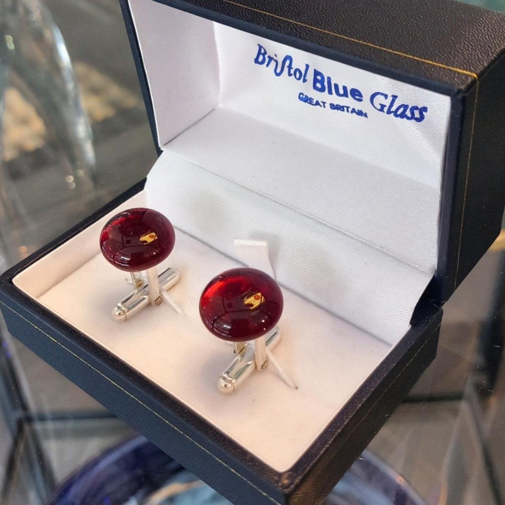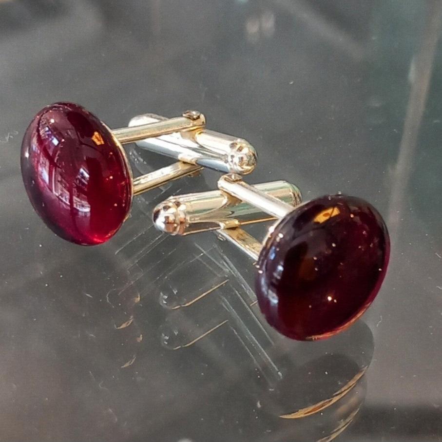 These hand-crafted ruby glass cufflinks have silver plated findings and are a cut above all the other run-of-the-mill cufflinks out there.