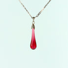 A beautiful ruby glass drop pendant necklace, available in two sterling silver chain lengths of 16" and 18". The timeless elegance of this necklace will grace many an outfit and make you feel a million dollars. As with all our products, this ruby glass necklace is handmade in the UK.