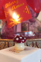 This dinky handmade toadstool is so cute! A lucky little mushroom, in colours of red, so true.